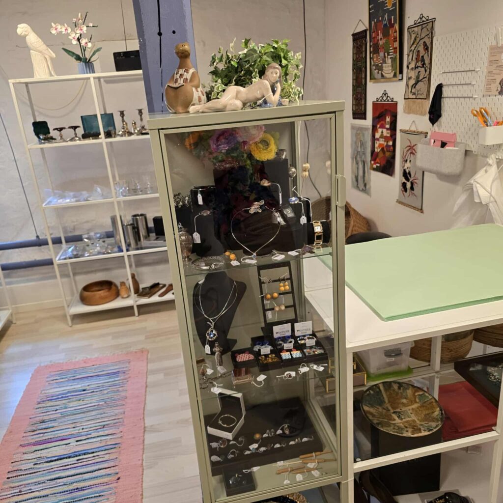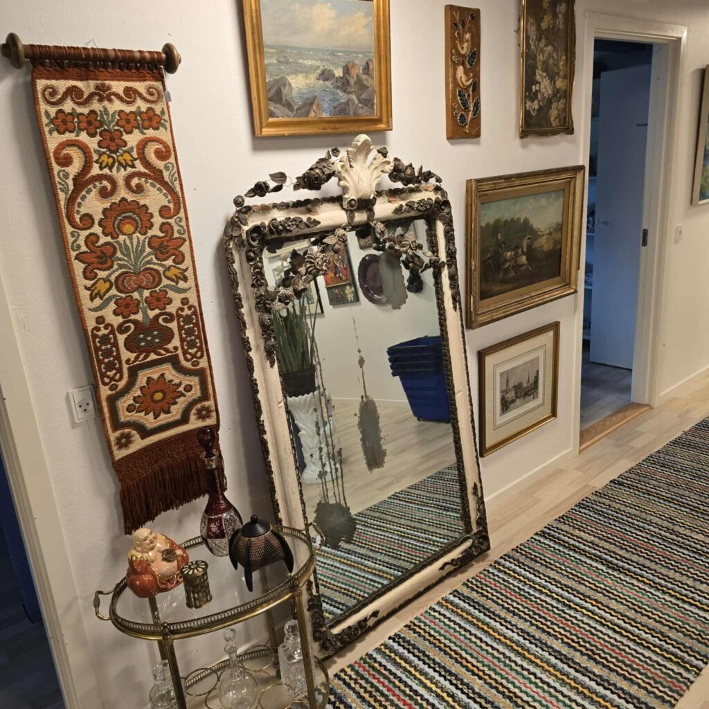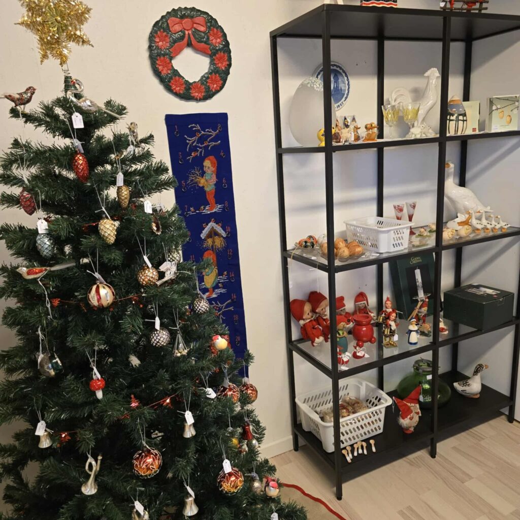 I vores butik finder du alt fra antikviteter til moderne kunst, og vi har en særlig passion for glas og glaskunst, så det har vi altid et særligt, kurateret udvalg af. Vi har også altid et stort udvalg af blandt andet julepynt, kongeligt porcelæn, smykker, vintage-tøj og hvad du ellers finder her på siden.