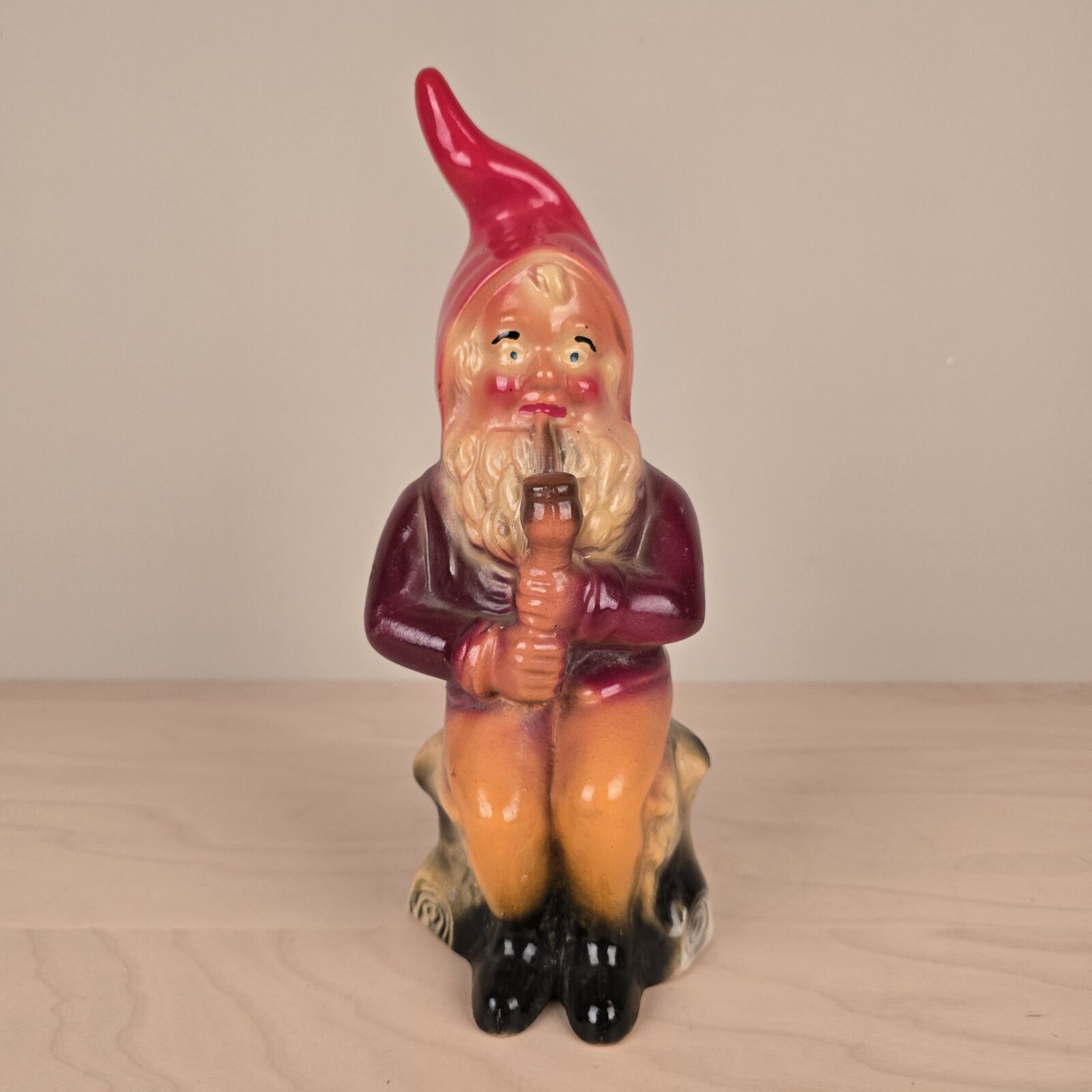 Ældre tysk havenisse 28cm. Har aldersrelateret brugsspor.