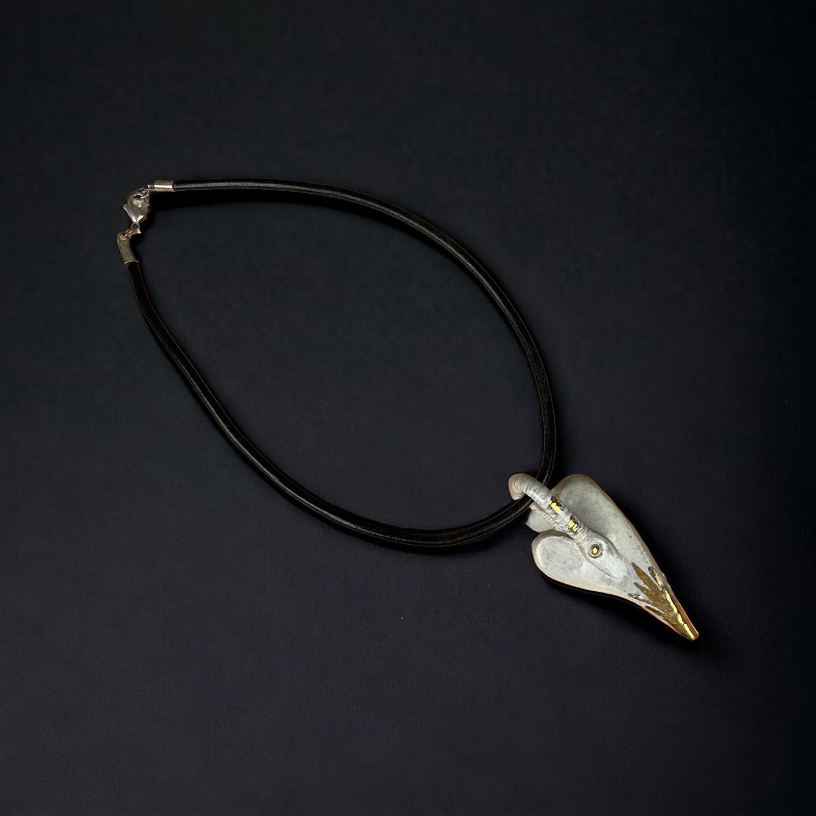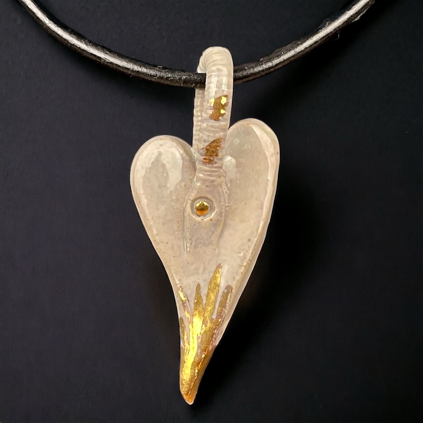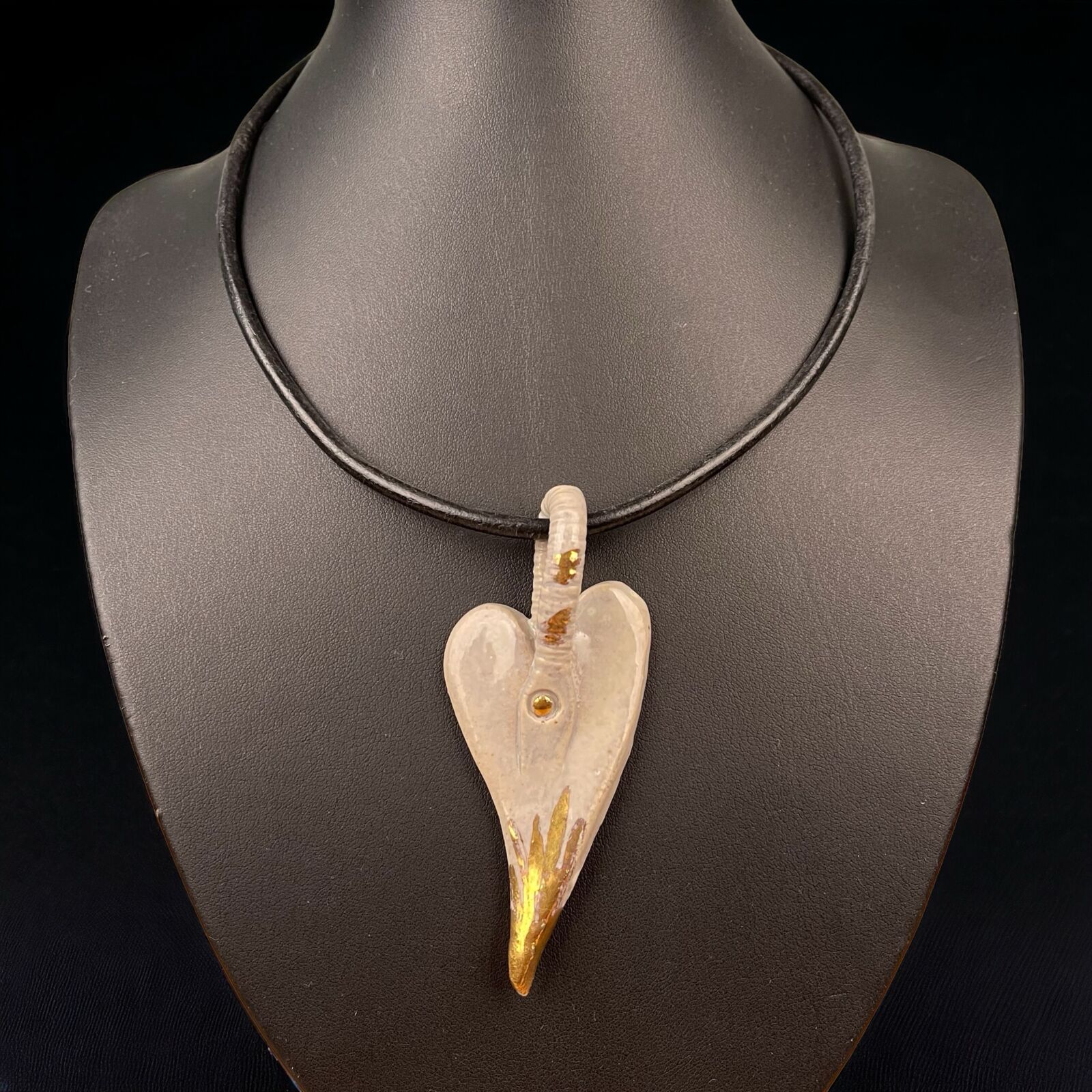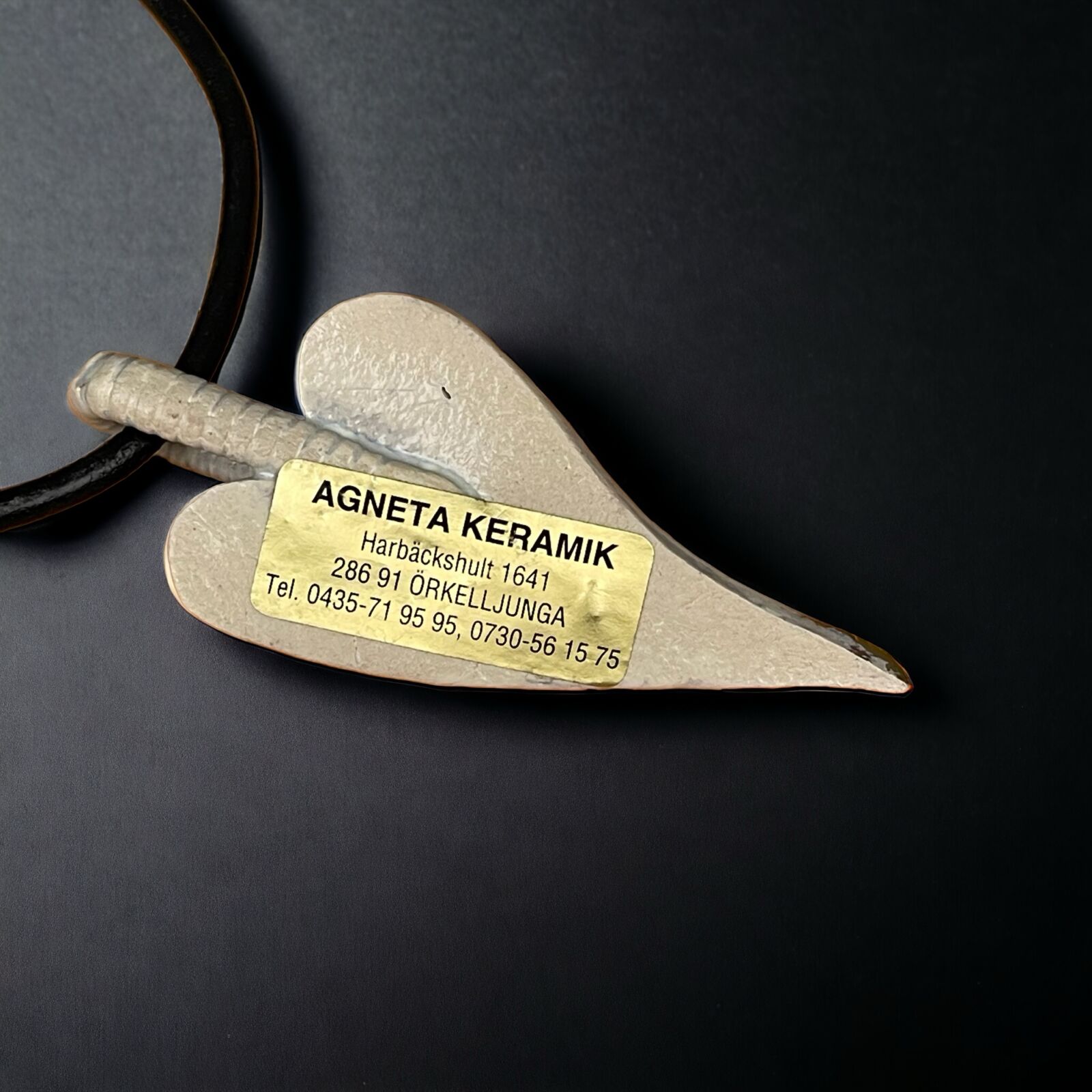 Unikasmykke fra Agneta Keramik. Lædersnor med keramikhjerte. Hjerte 8,5cm. Kæde 44cm.