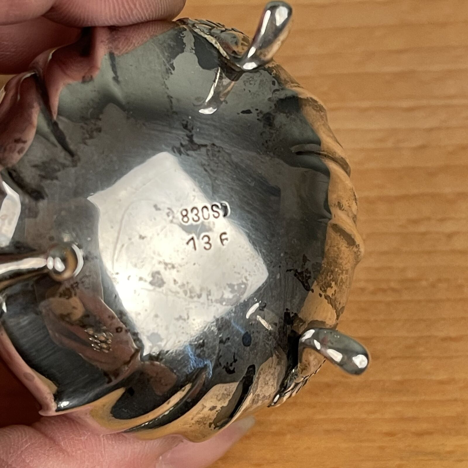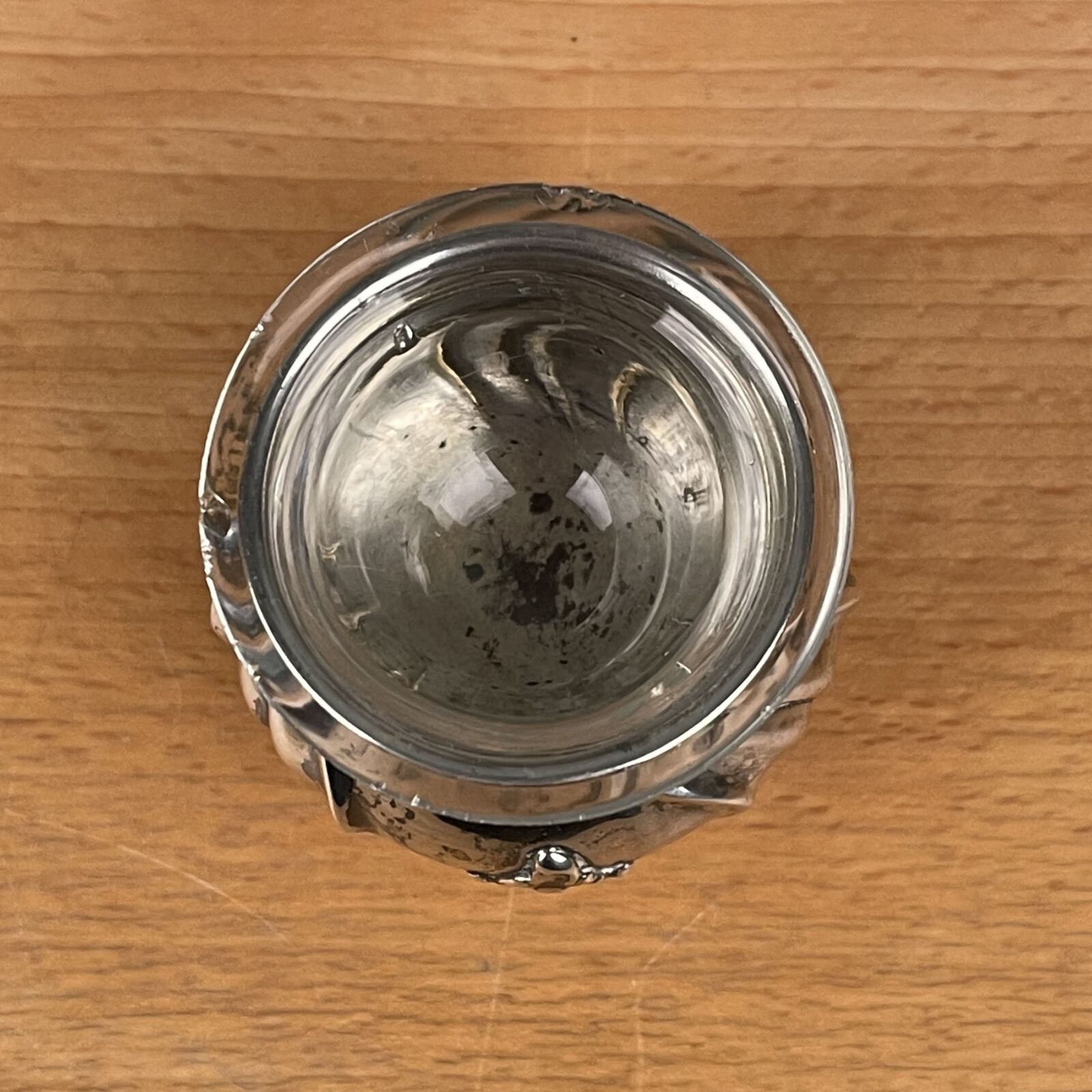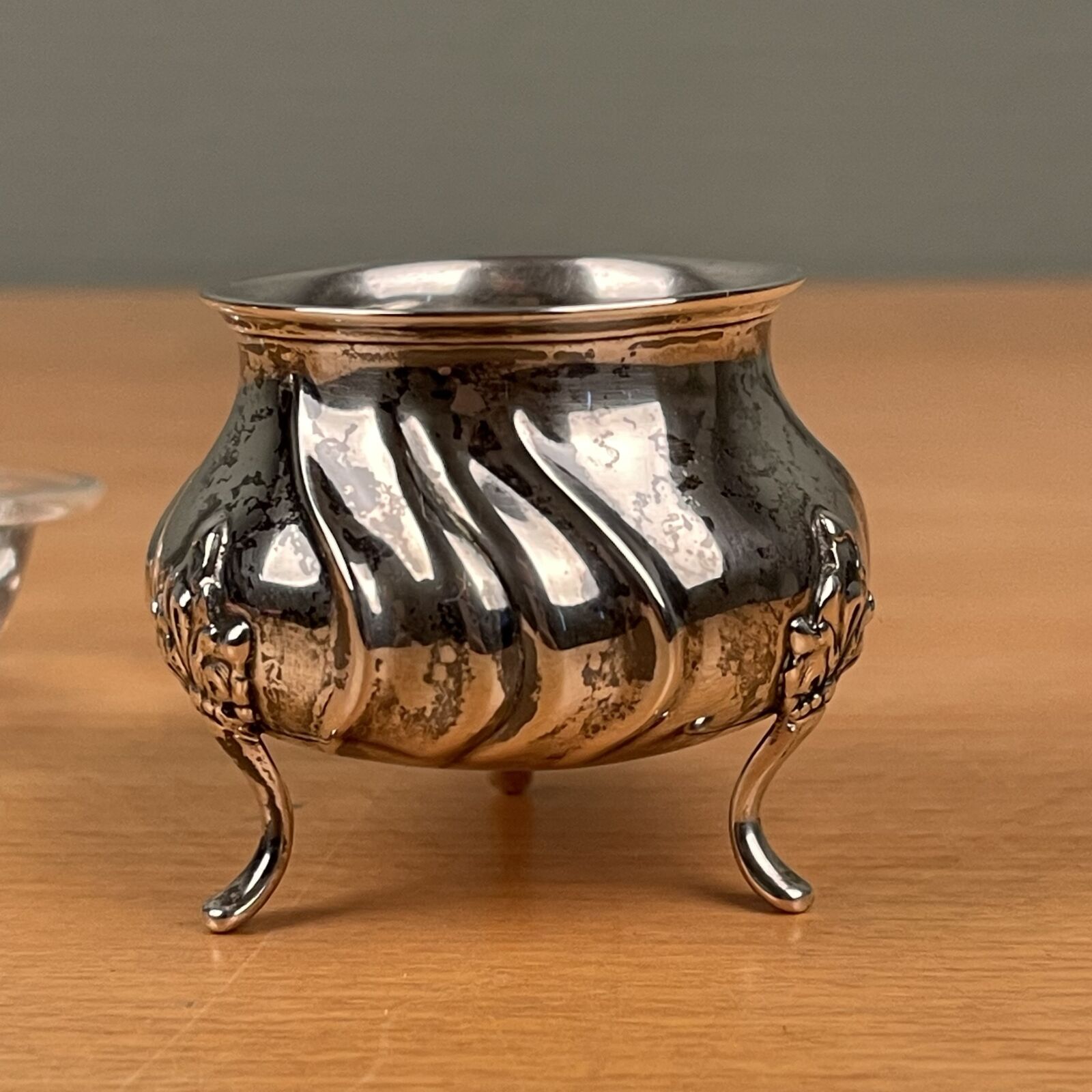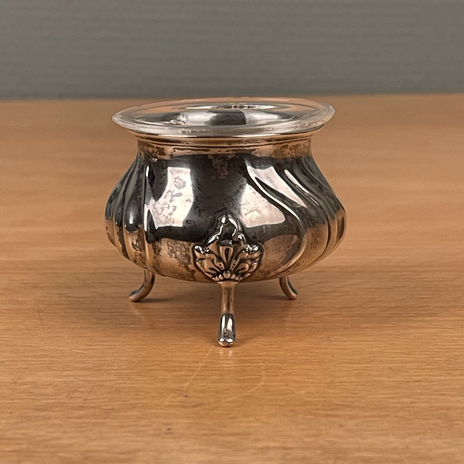 Antikt saltkar på fødder i sølv