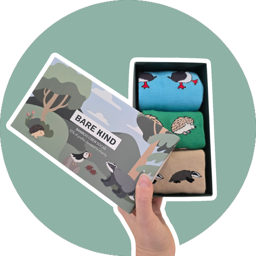‘Vores bambussokker til voksne er af god kvalitet, alsidige og komfortable. Disse dyresokker er lavet af plys bambusfibre og kommer med flotte mønstre og muntre farver, der med garanti får ethvert outfit til at springe ud. De er luksuriøst bløde, varmere end bomuldsstrømper, åndbare, svedtransporterende og antibakterielle. Snup dig et par, og vi donerer 10 % af overskuddet til at redde dyret på dine sokker.’ Bare Kind.