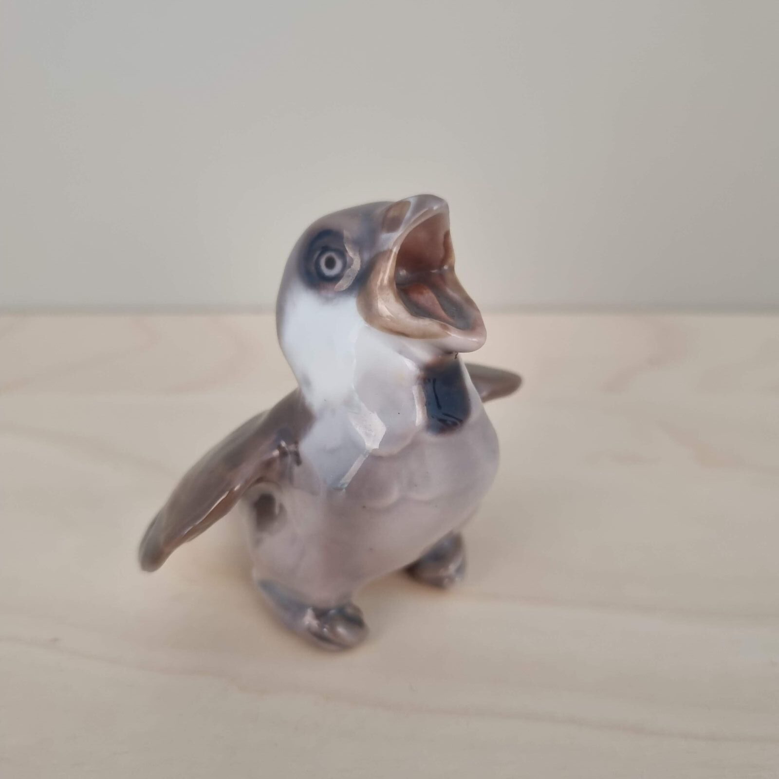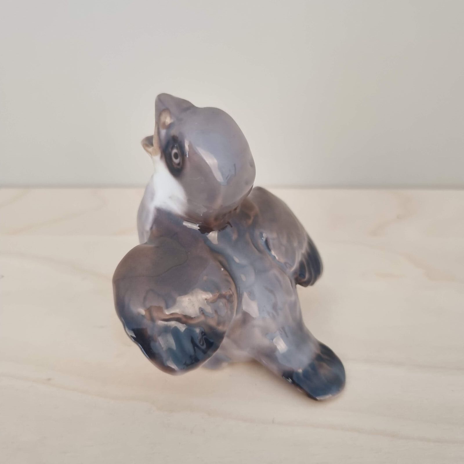 Sød lille sulten gråspurveunge fra Bing & Grøndahl. 1. sort. Intakt. Nr. 1852. 7cm høj.