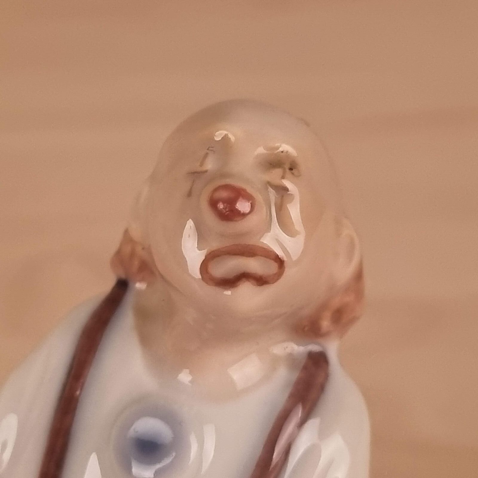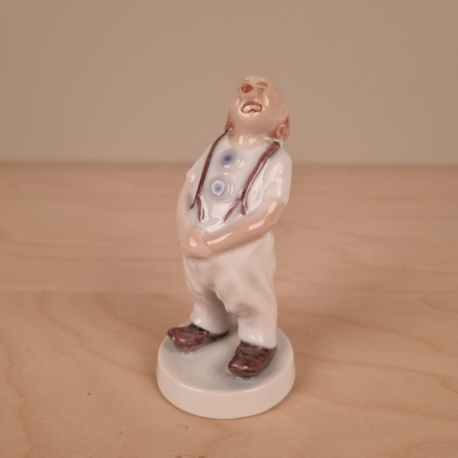 Lille figur forestillende en trist klovn, udført hos Bing & Grøndahl.