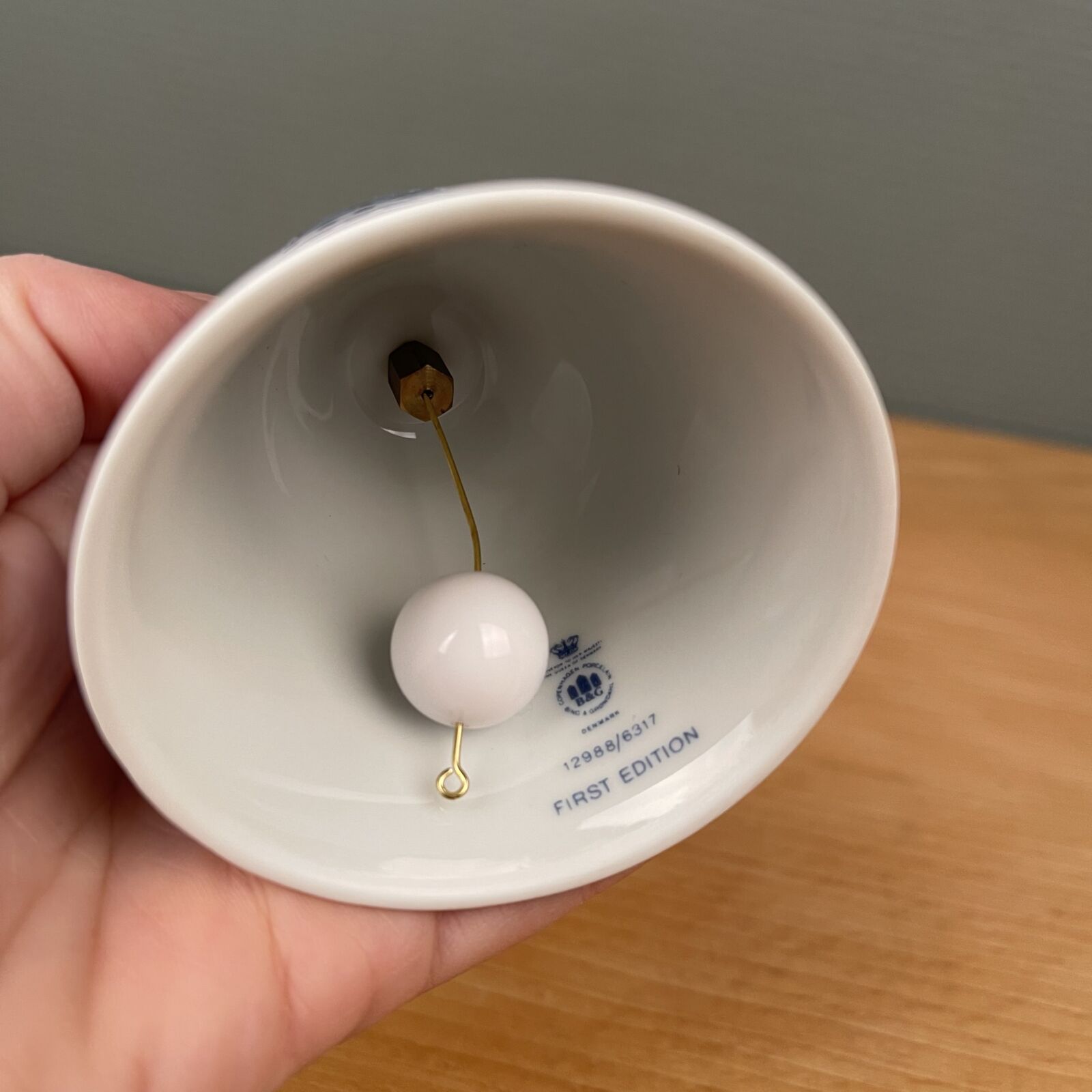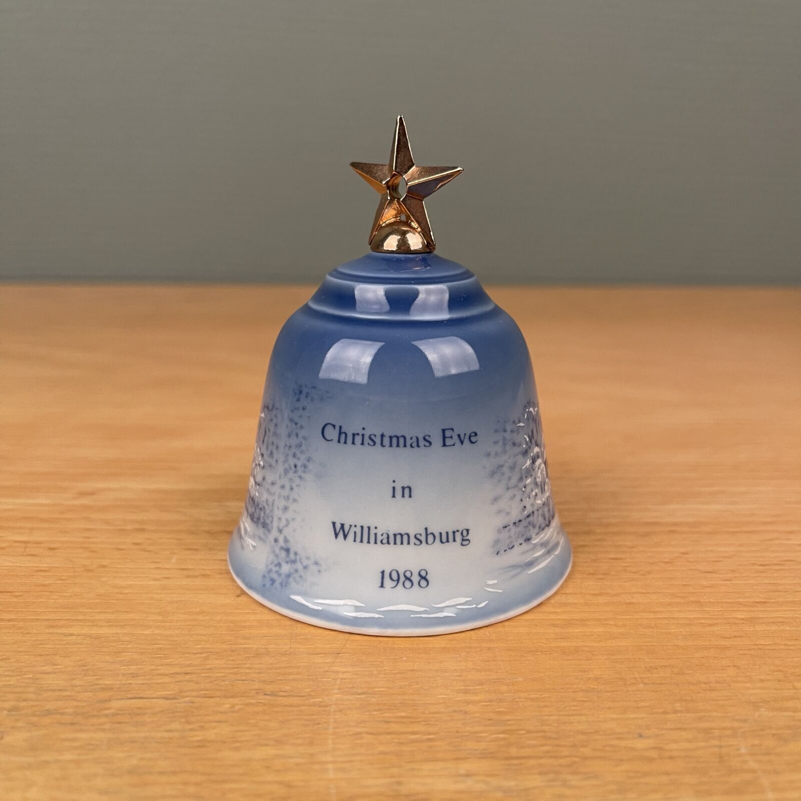 Klassisk porcelæn juleklokke Williamsburg 1988 fra Bing & Grøndahl. 8,5cm høj. 6,5cm Ø.