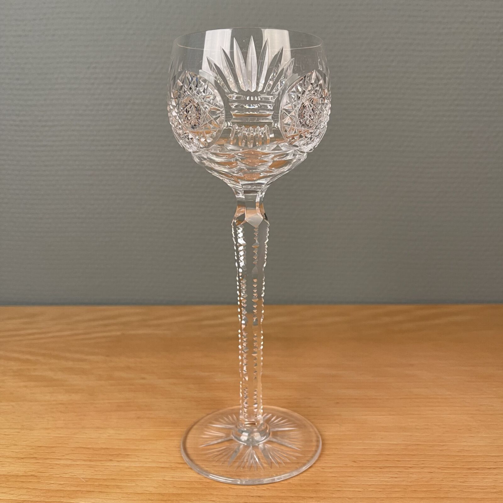 Smukkeste hvidvinsglas i Bøhmisk krystal. 21cm højt.