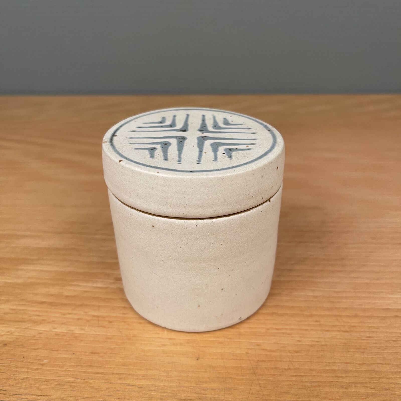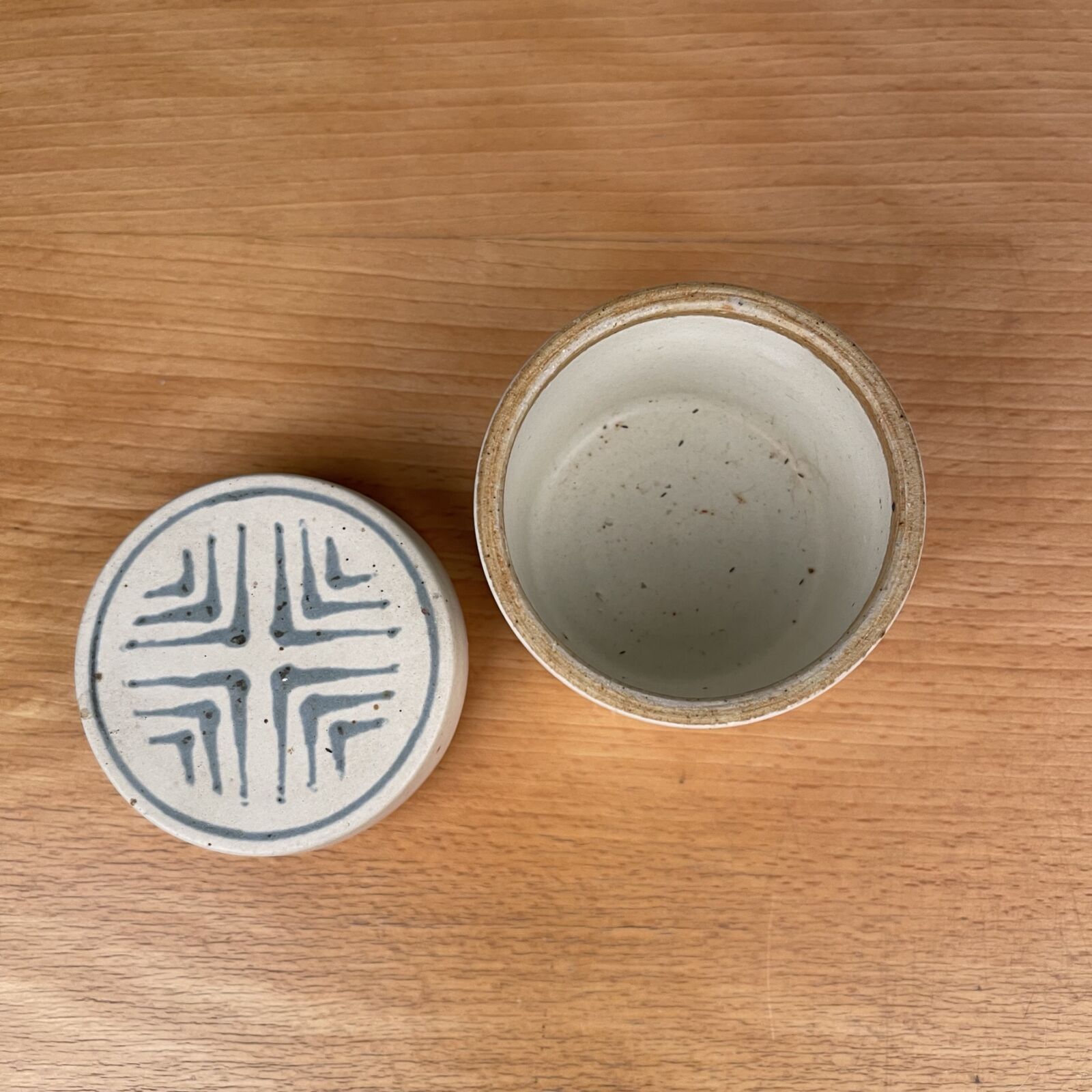 Smuk lertøjskrukke med låg af keramiker Daniel Post. 7,5cm høj. 7cm Ø. Dansk kunsthåndværk. Som ny