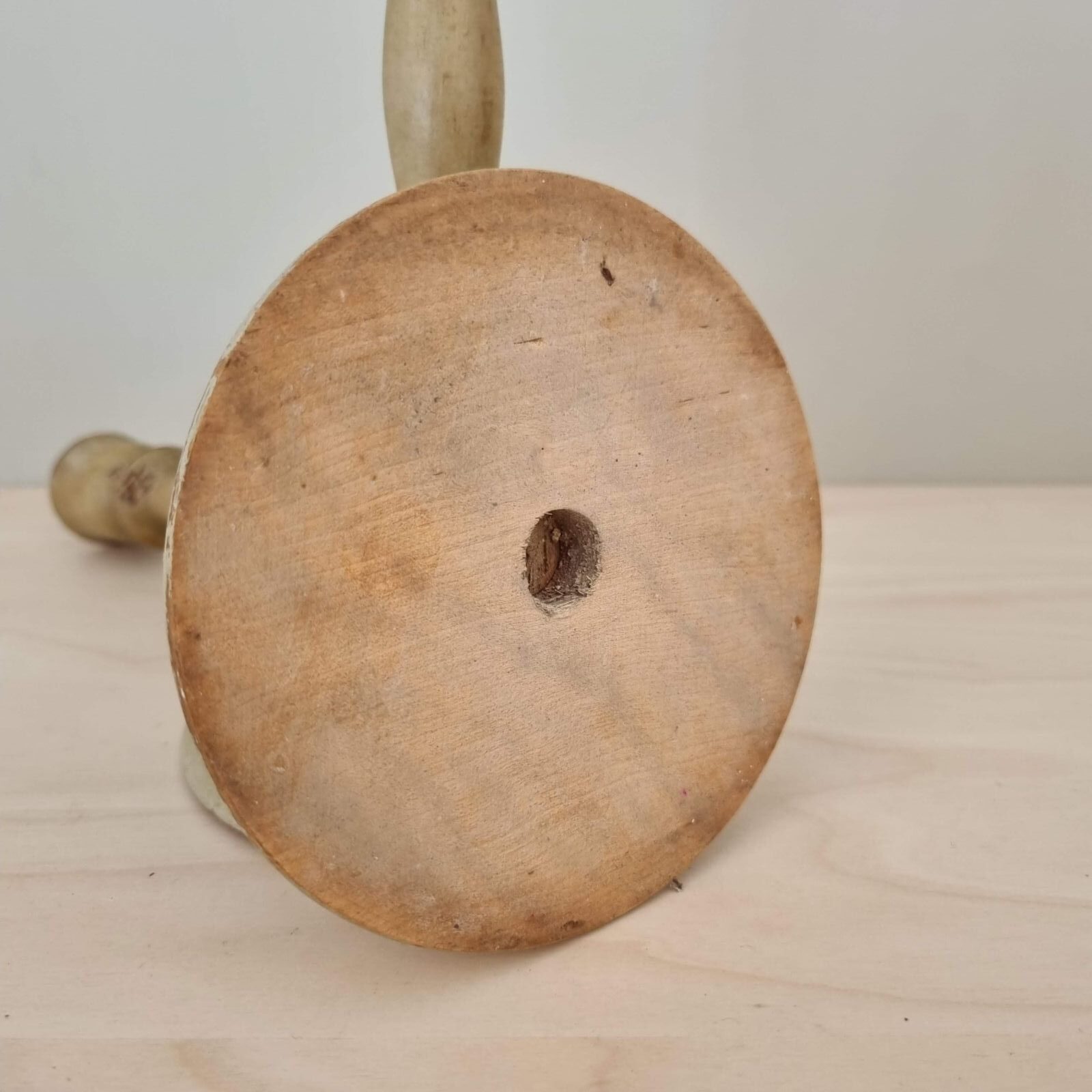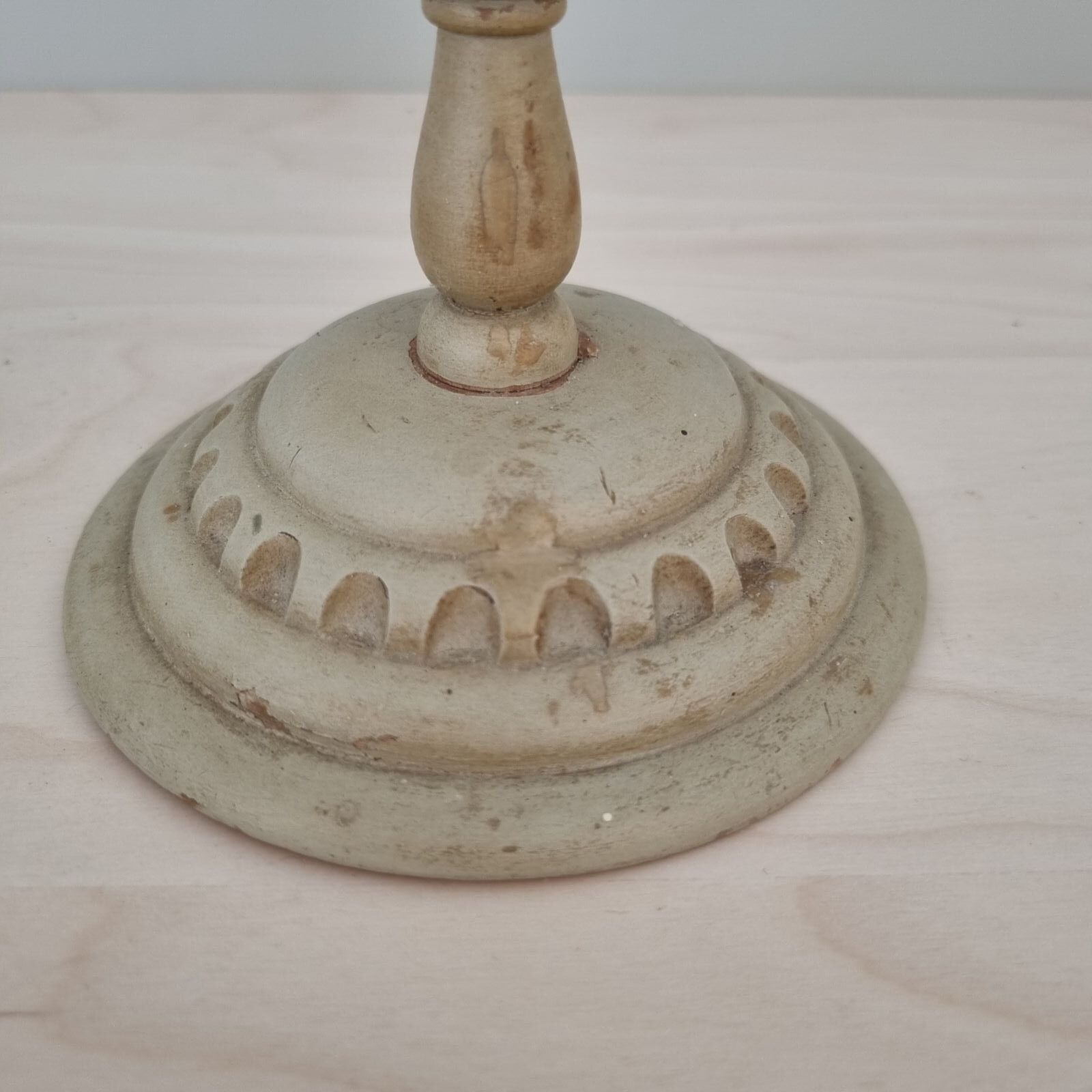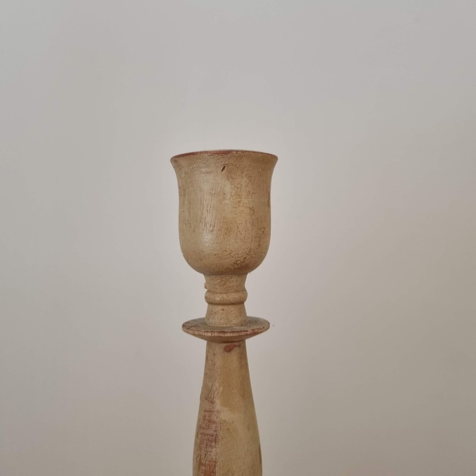 Et par antikke stager i træ – bemalede og med masser af patina.