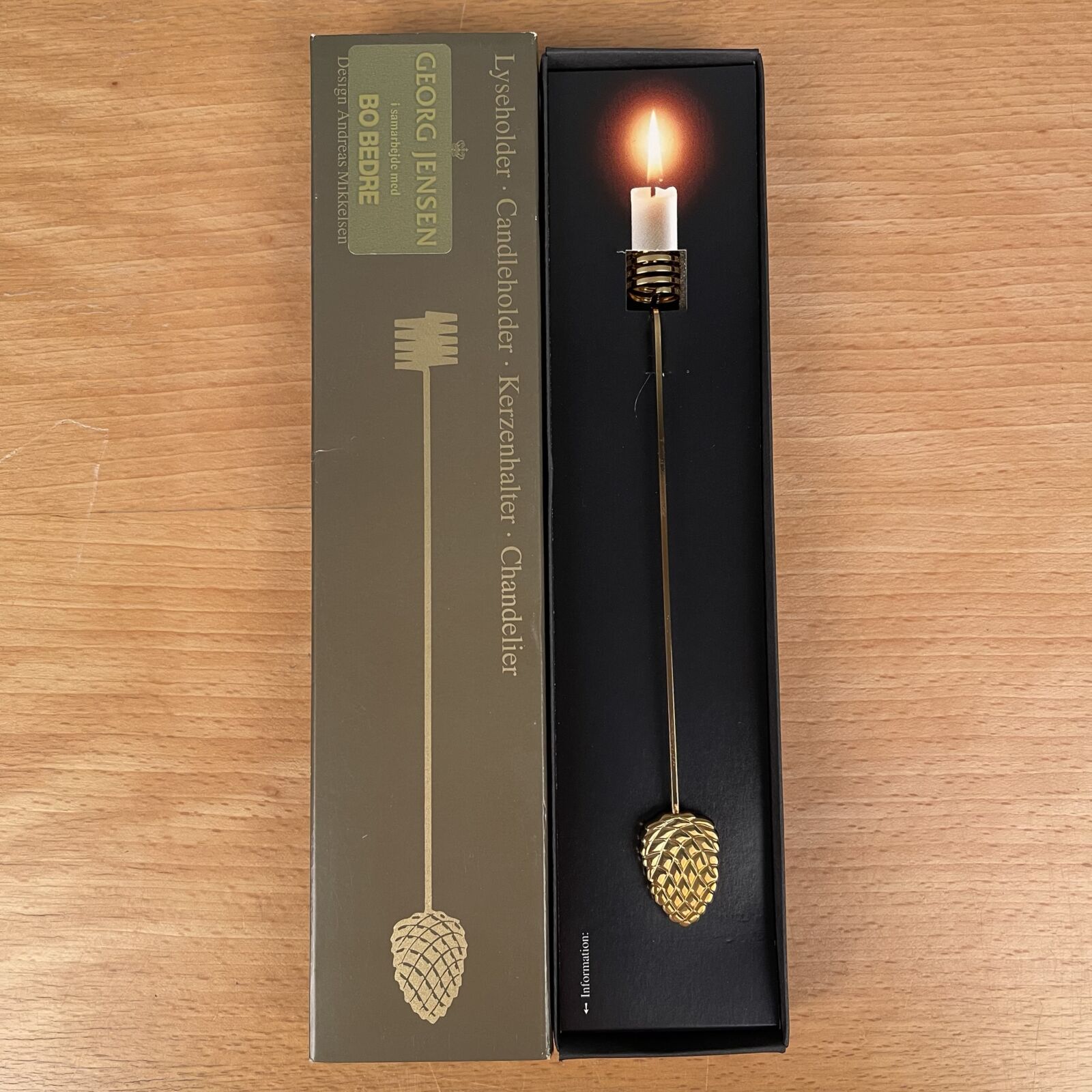Georg Jensen lysholder Kogle 1994. Forgyldt. Velholdt og i æske.