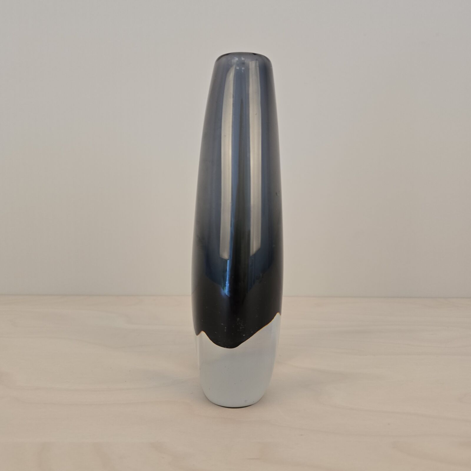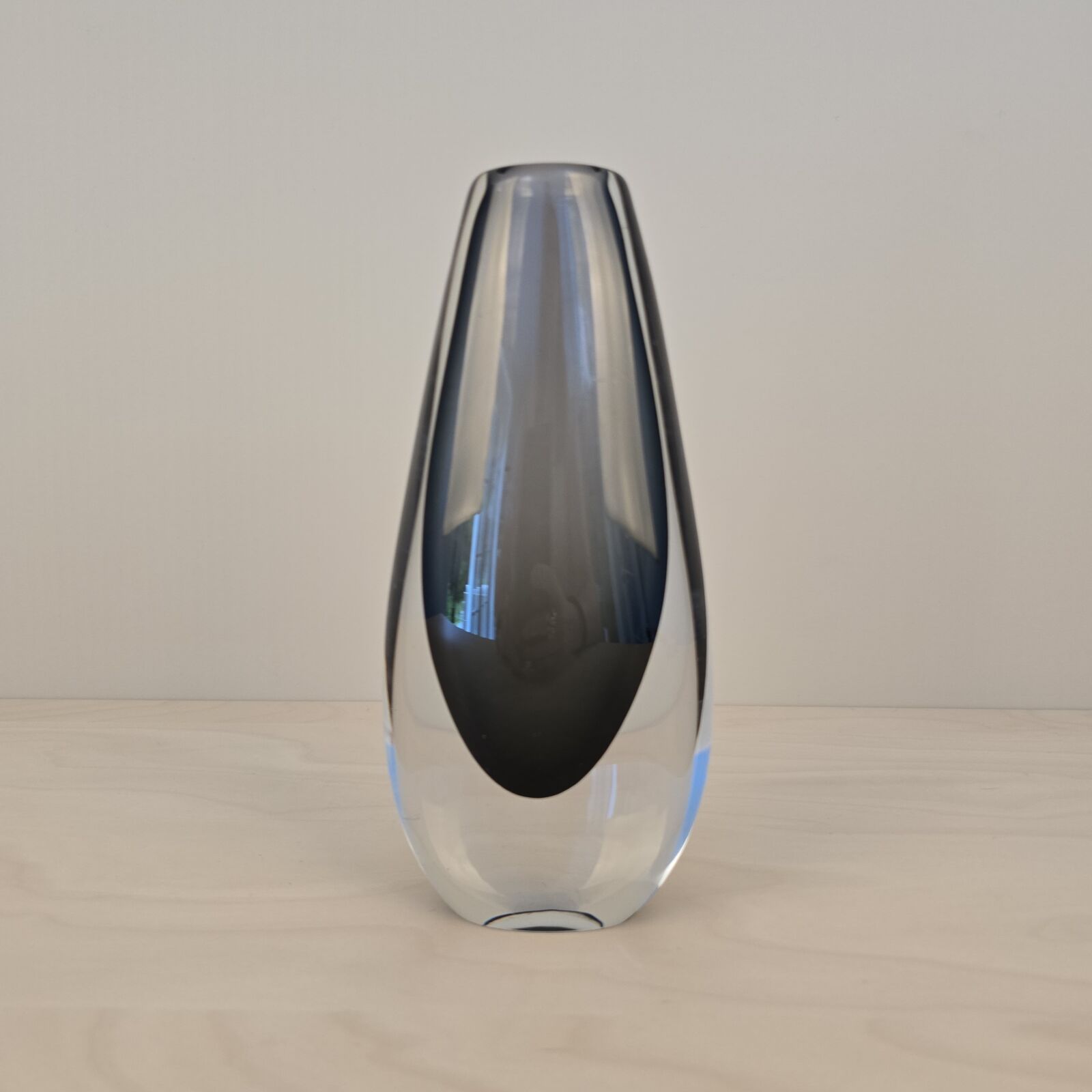 Vase af Asta Strömberg, model B894. Gråtonet glas omkranset af klart glas. Intakt og velholdt. 21cm høj.