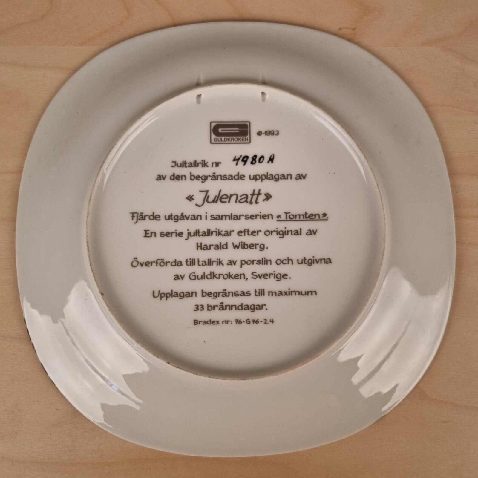 Juletallerken med Harald Wibergs berømte “Tomten”, produceret hos Guldkroken.