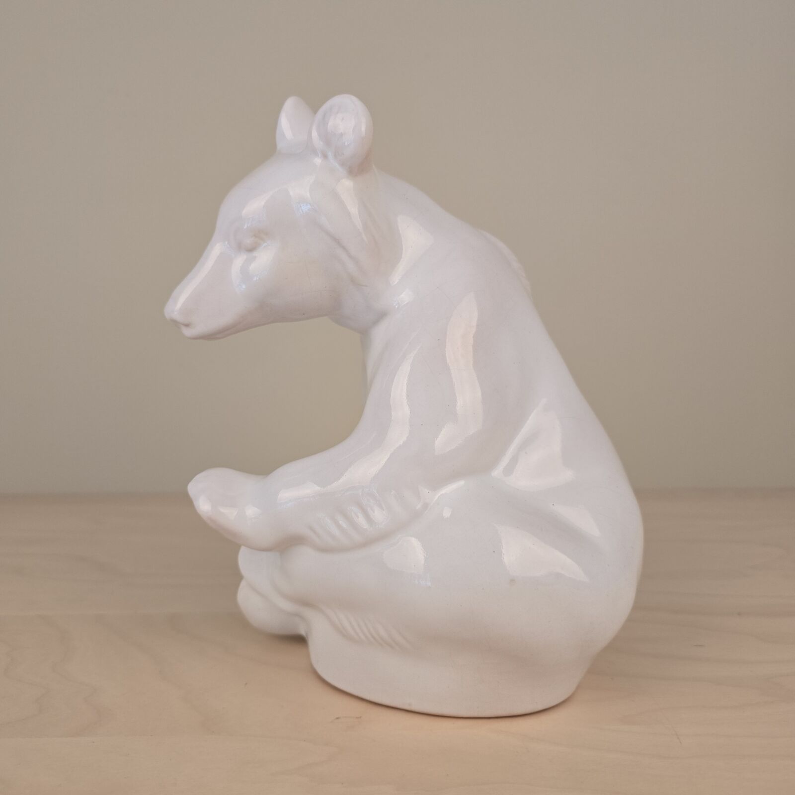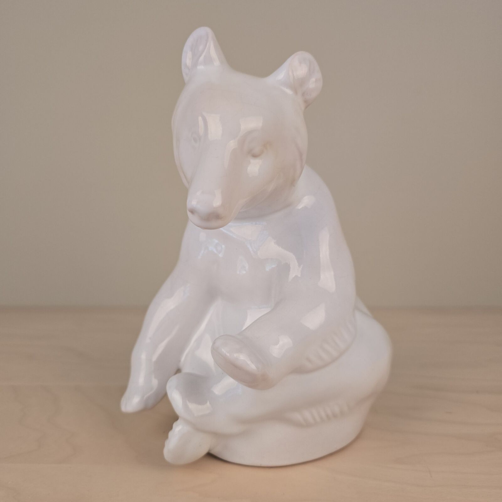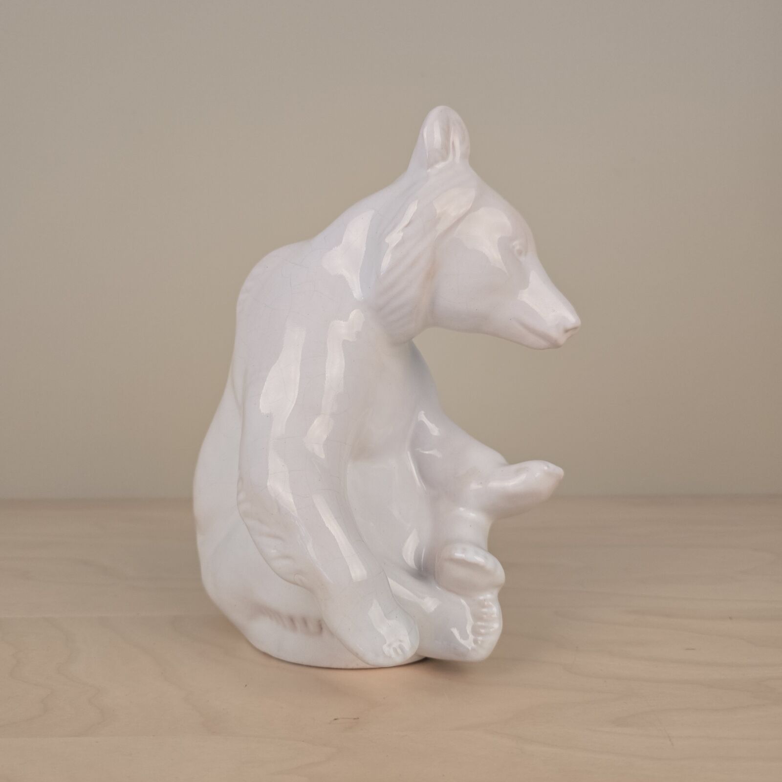 Skøn bjørn i hvid glaseret keramik. Ukendt kunstner. Velholdt og intakt. 23cm høj.