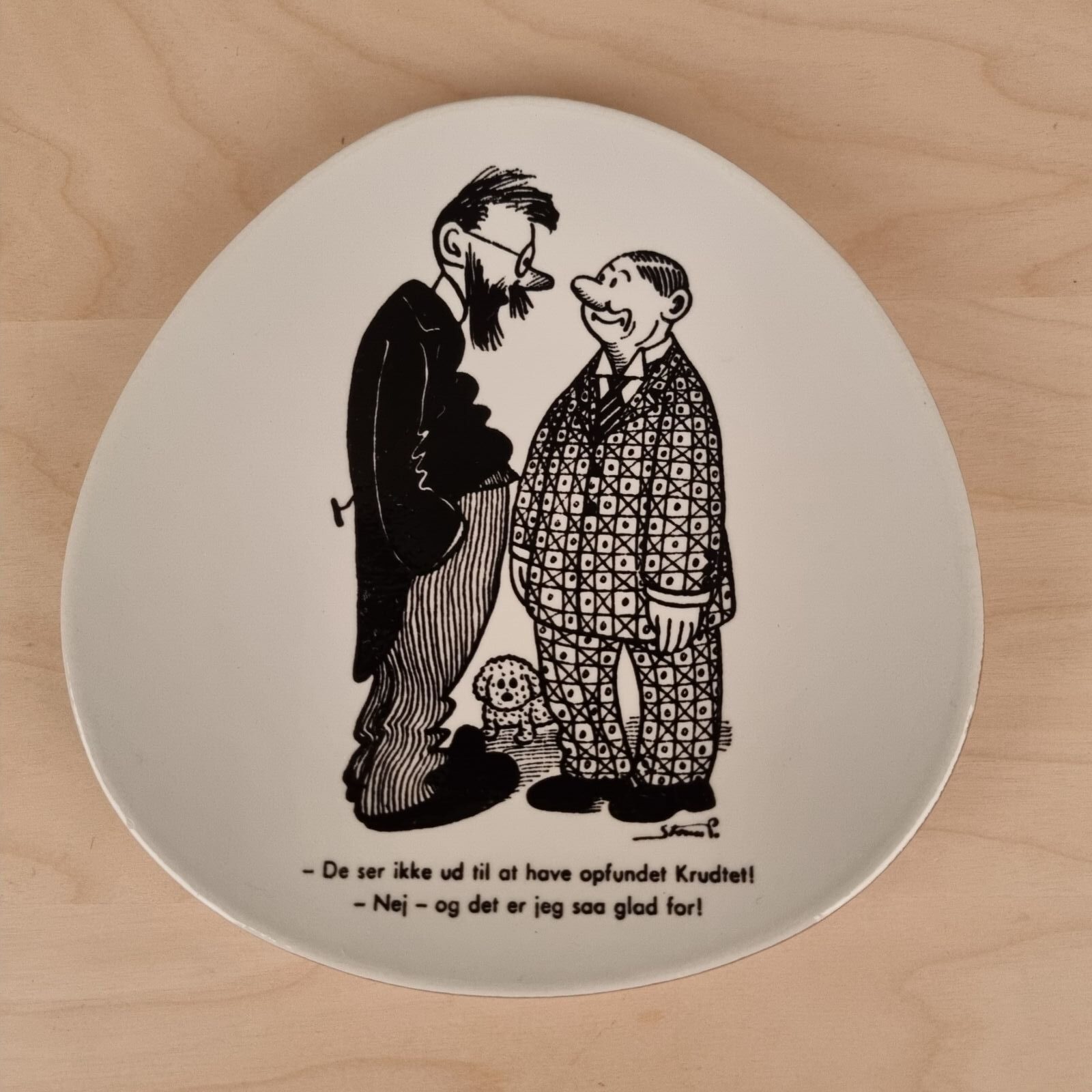 Platte fra Knabstrup med motiv af Storm P.