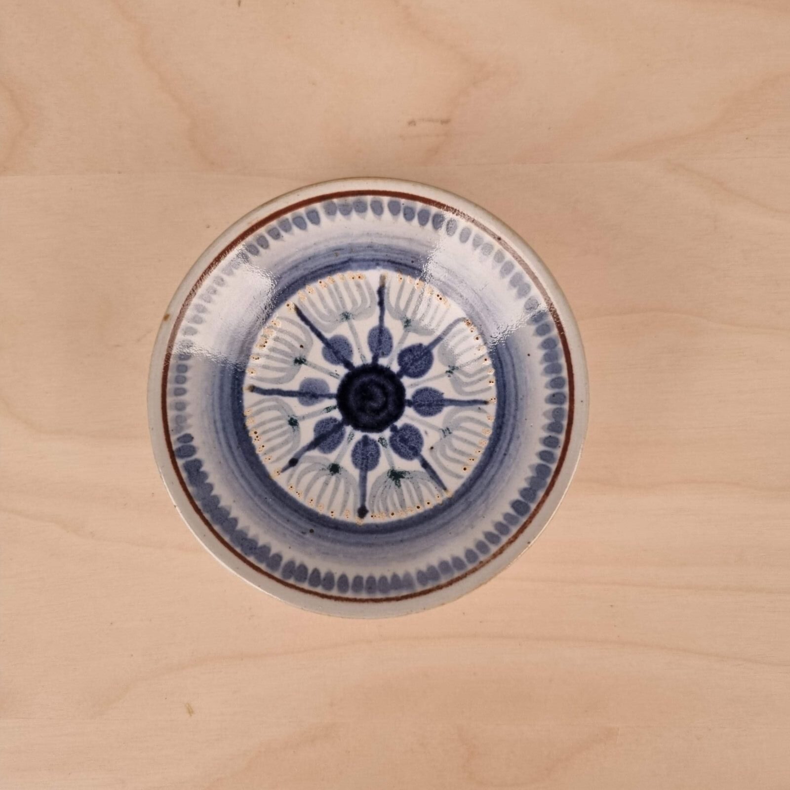 Utrolig smuk lille skål fra L. Hjorth, flot dekoreret med symmetrisk blåligt mønster.