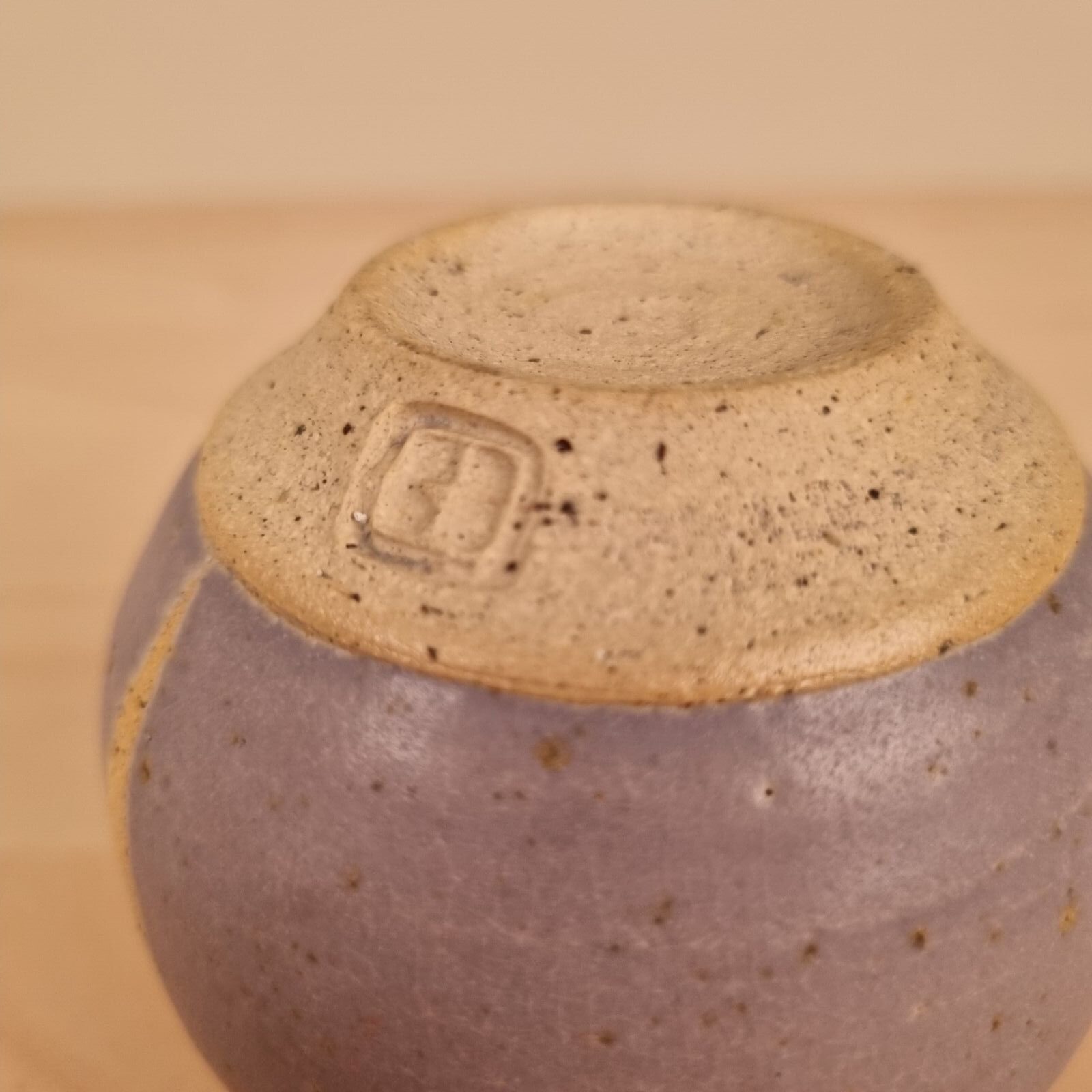 Fin lille kugleformet vase i stentøj, udført af Frank Tromborg.