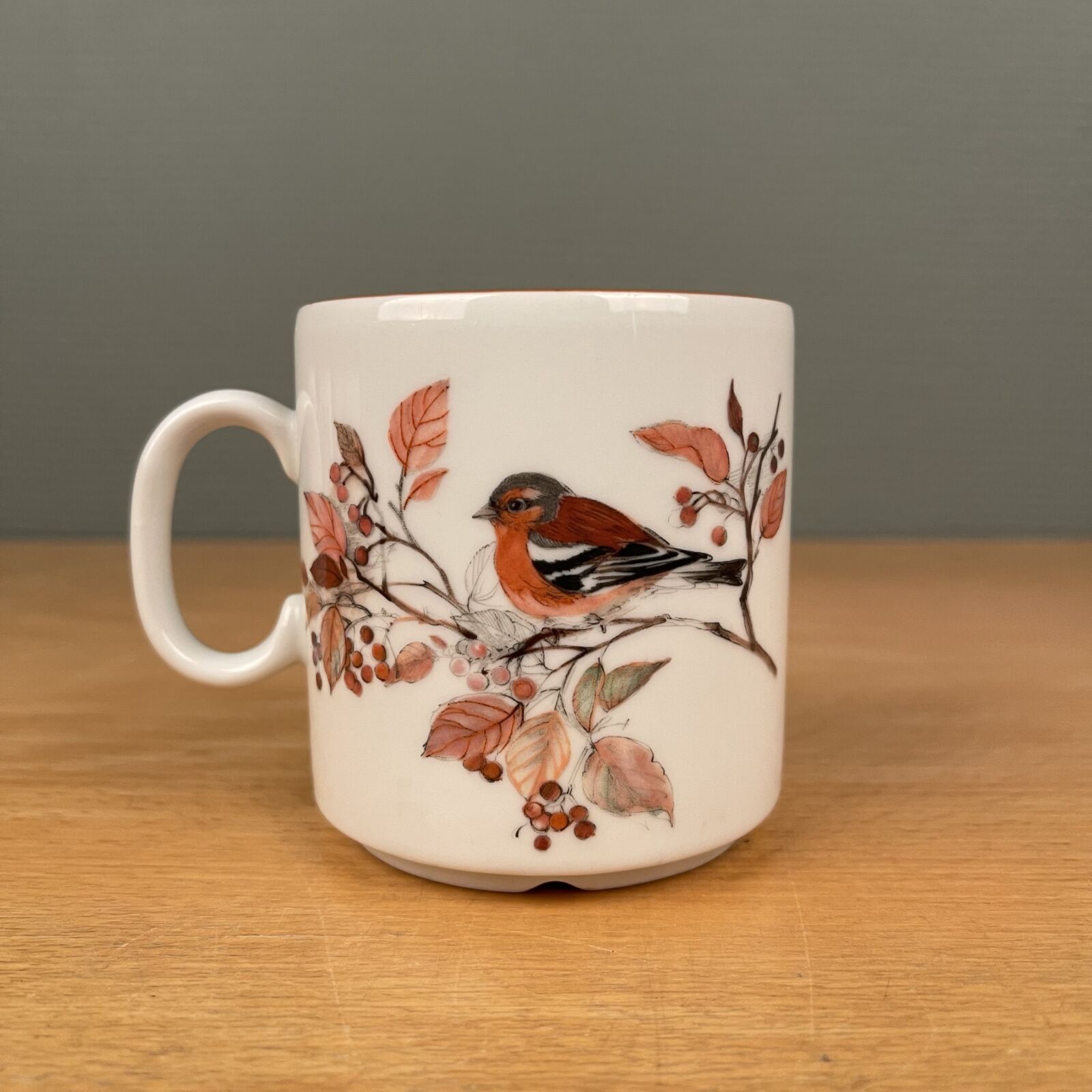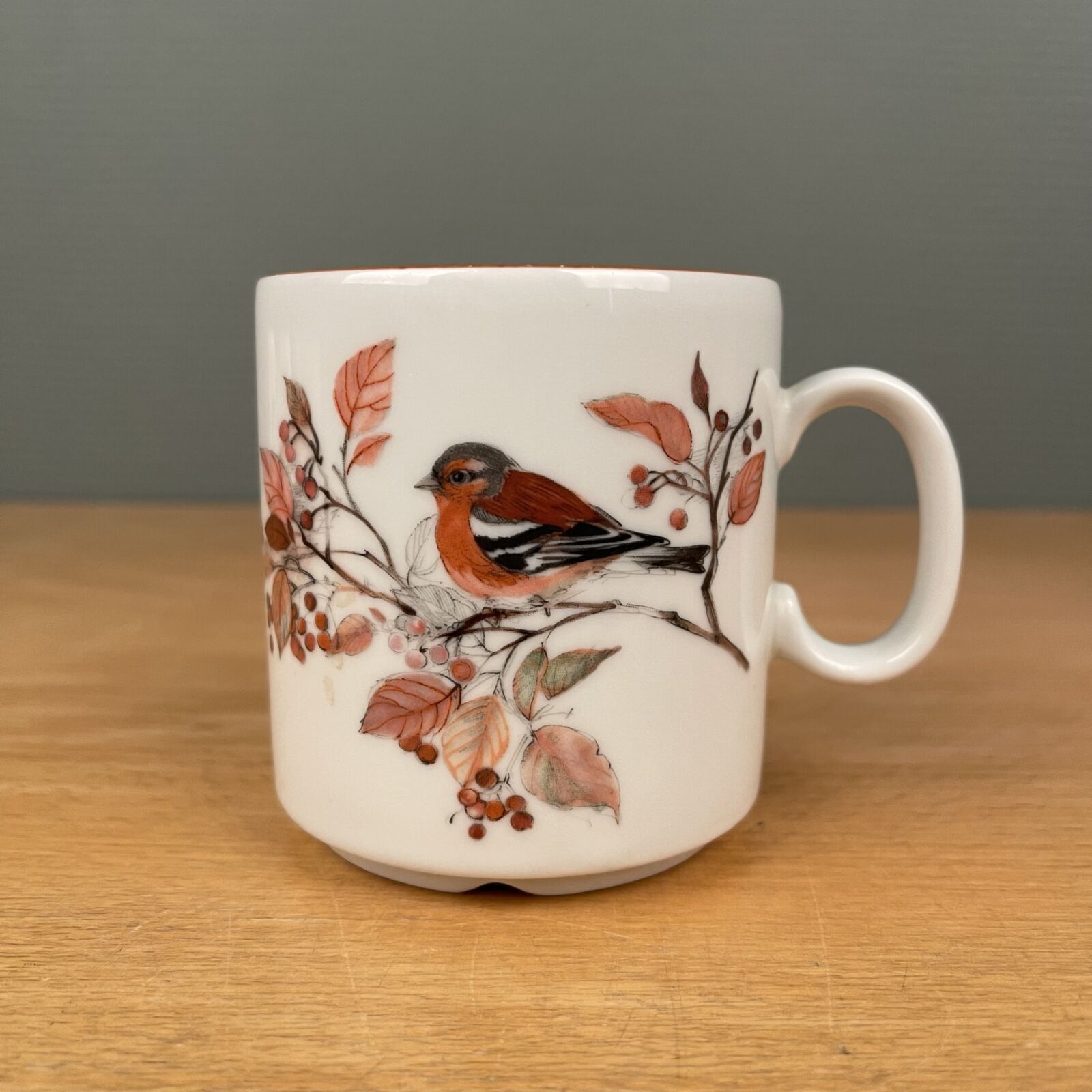 Mads Stage Jagtstel. Krus med Bogfinke. Få brugsspor. 8,5cm højt.