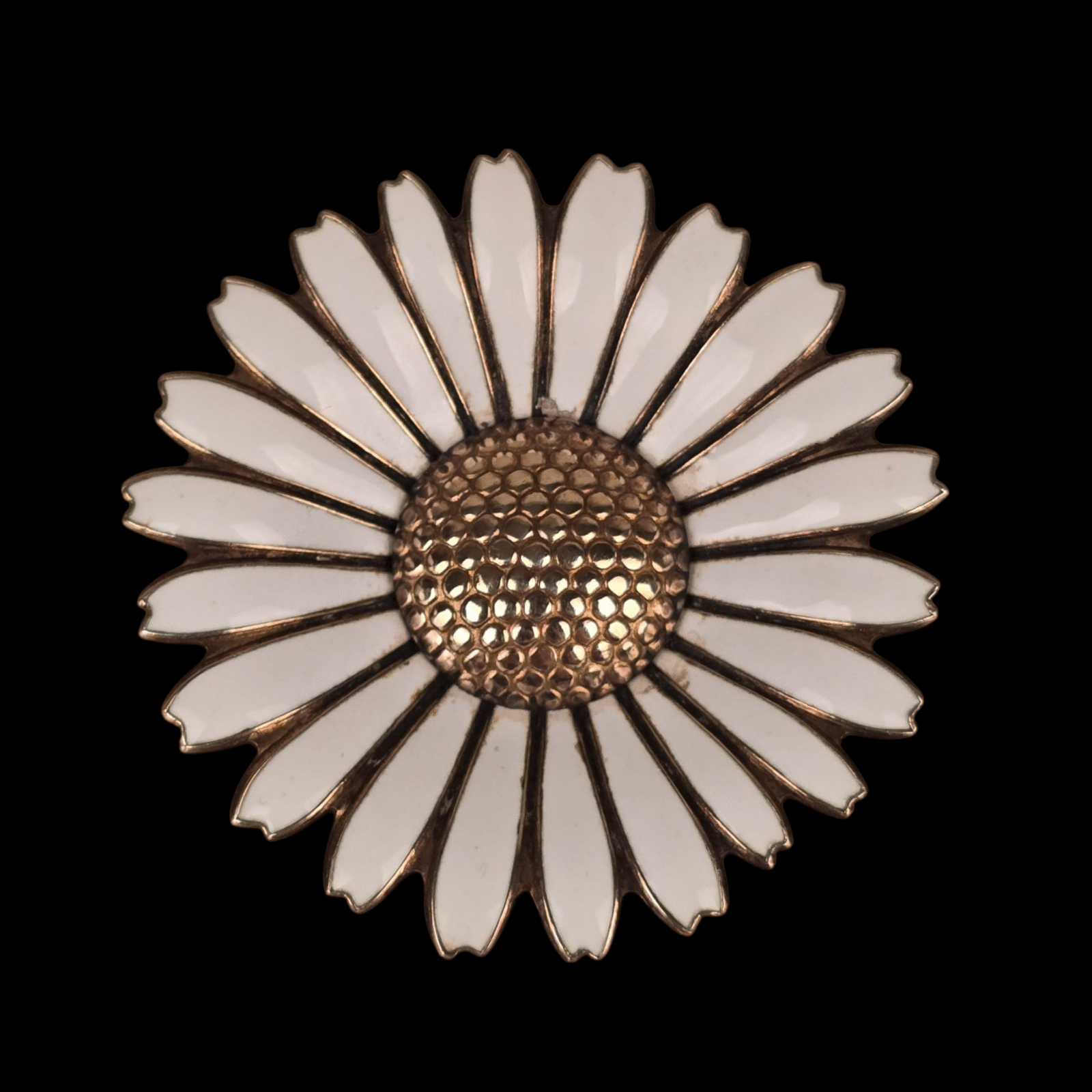Stor marguerit broche i emalje og forgyldt sølv af Viggo Pedersen. VP – 925