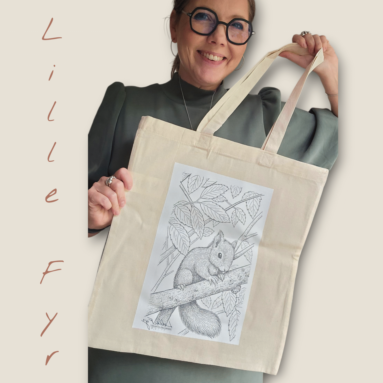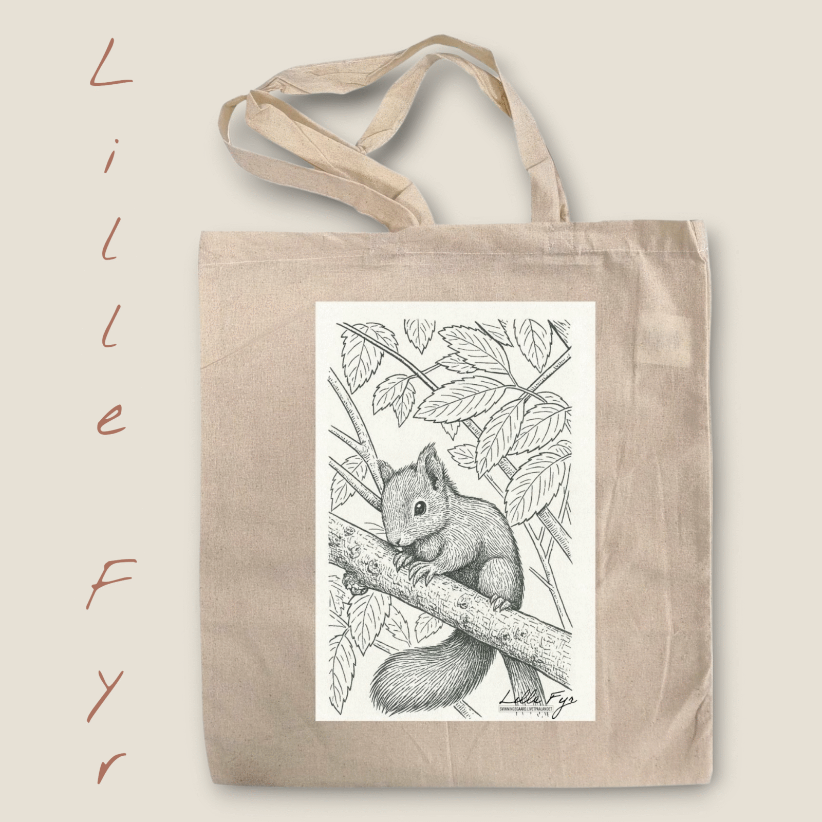 Skøn mulepose med ‘Lille Fyr’s motiv. I 100% genanvendt bomuld. Måler 38x41cm. Hank 28cm.
