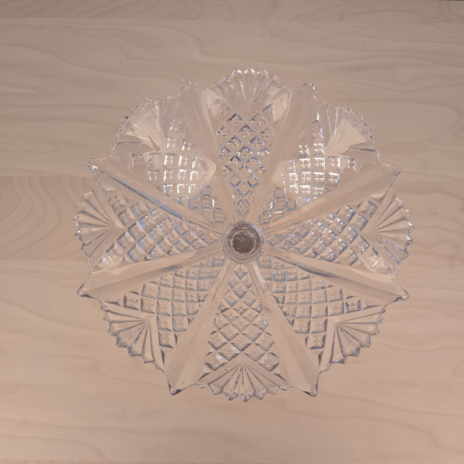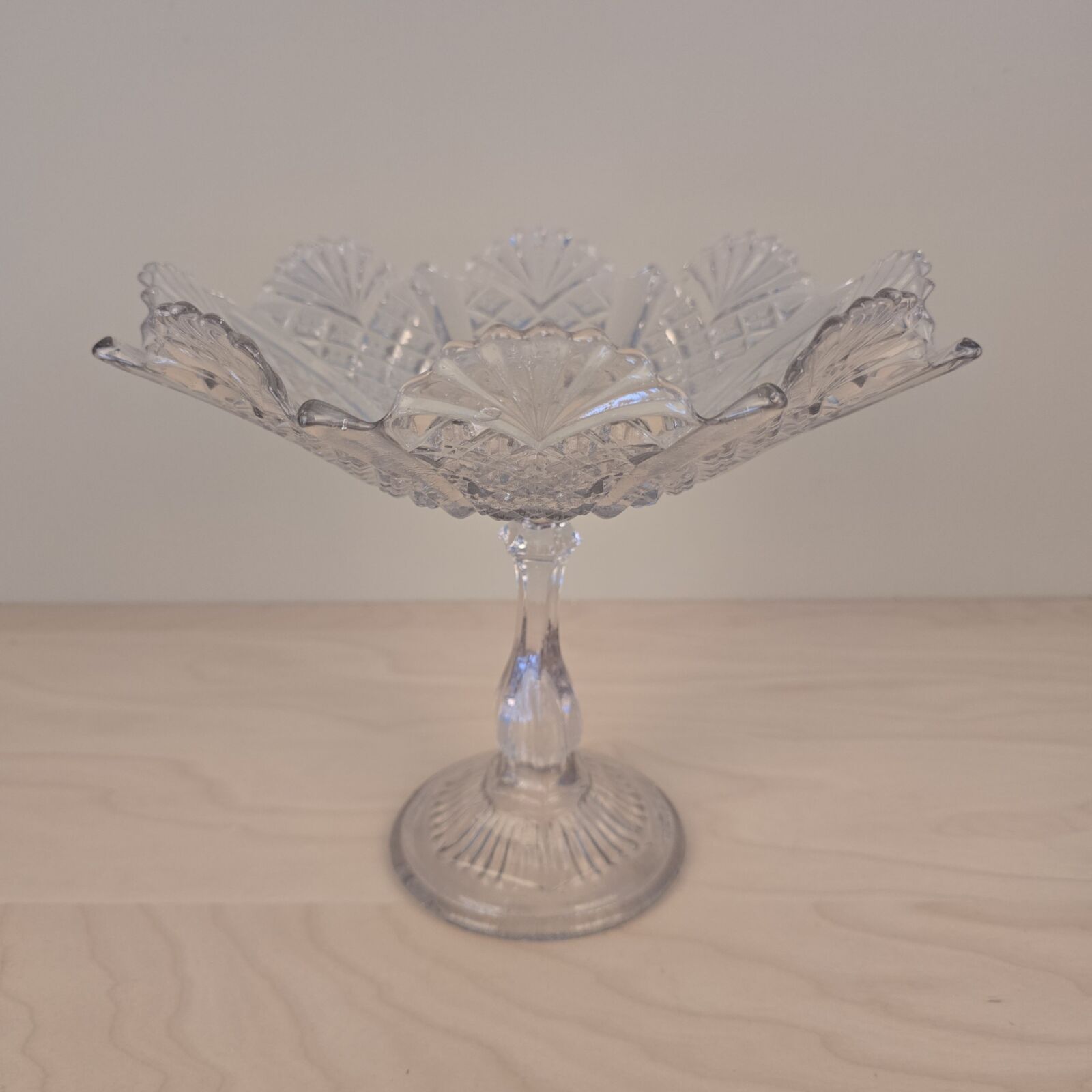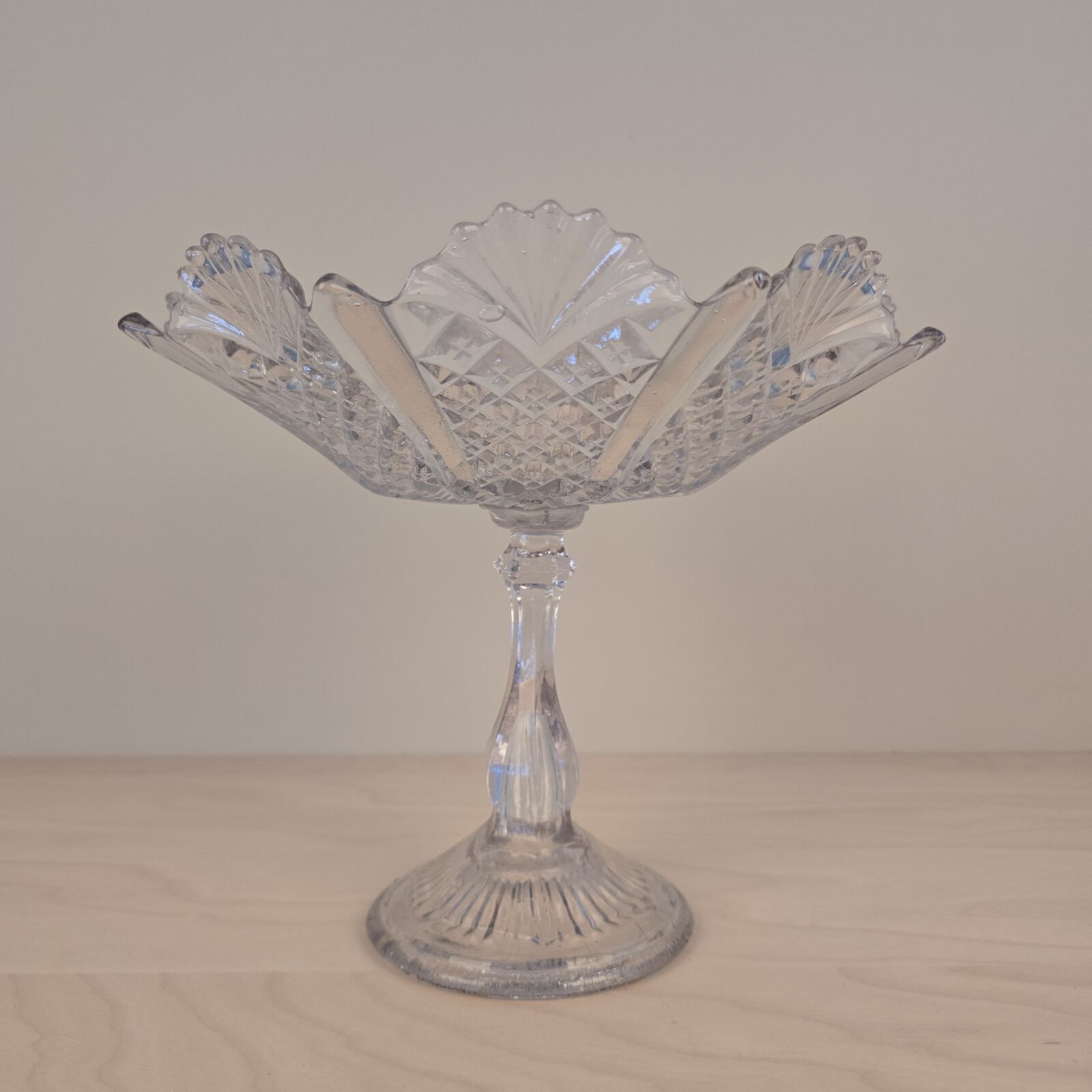 Opsats i presset glas. Skål på høj fod. 22,5cm høj. 27cm Ø. Velholdt og intakt.