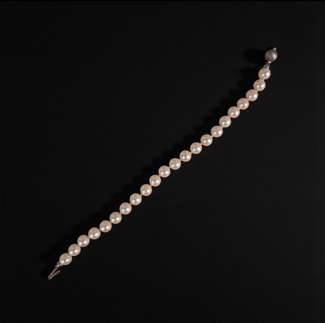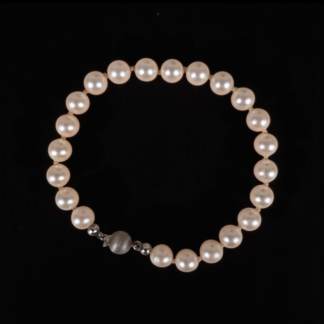 Perlearmbånd med sterling sølv lukning. 19cm. Velholdt og intakt.