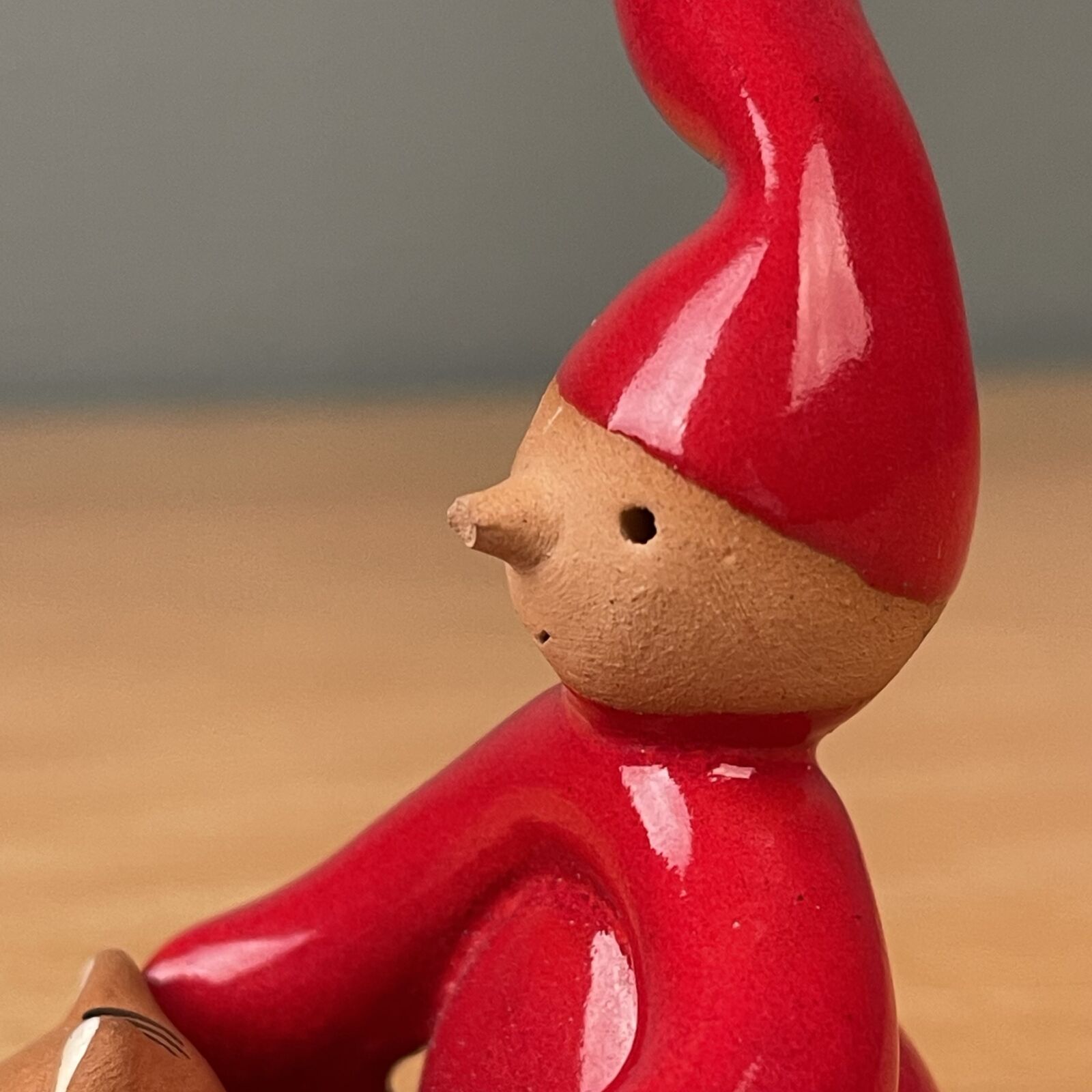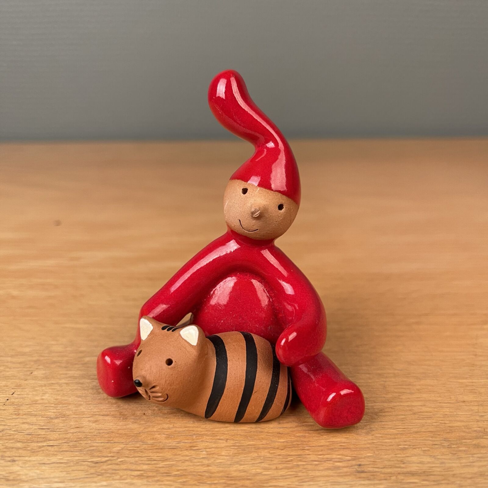Skøn lille Pixy nisse med kat. Har desværre mistet næsespidsen. 7,5cm høj.