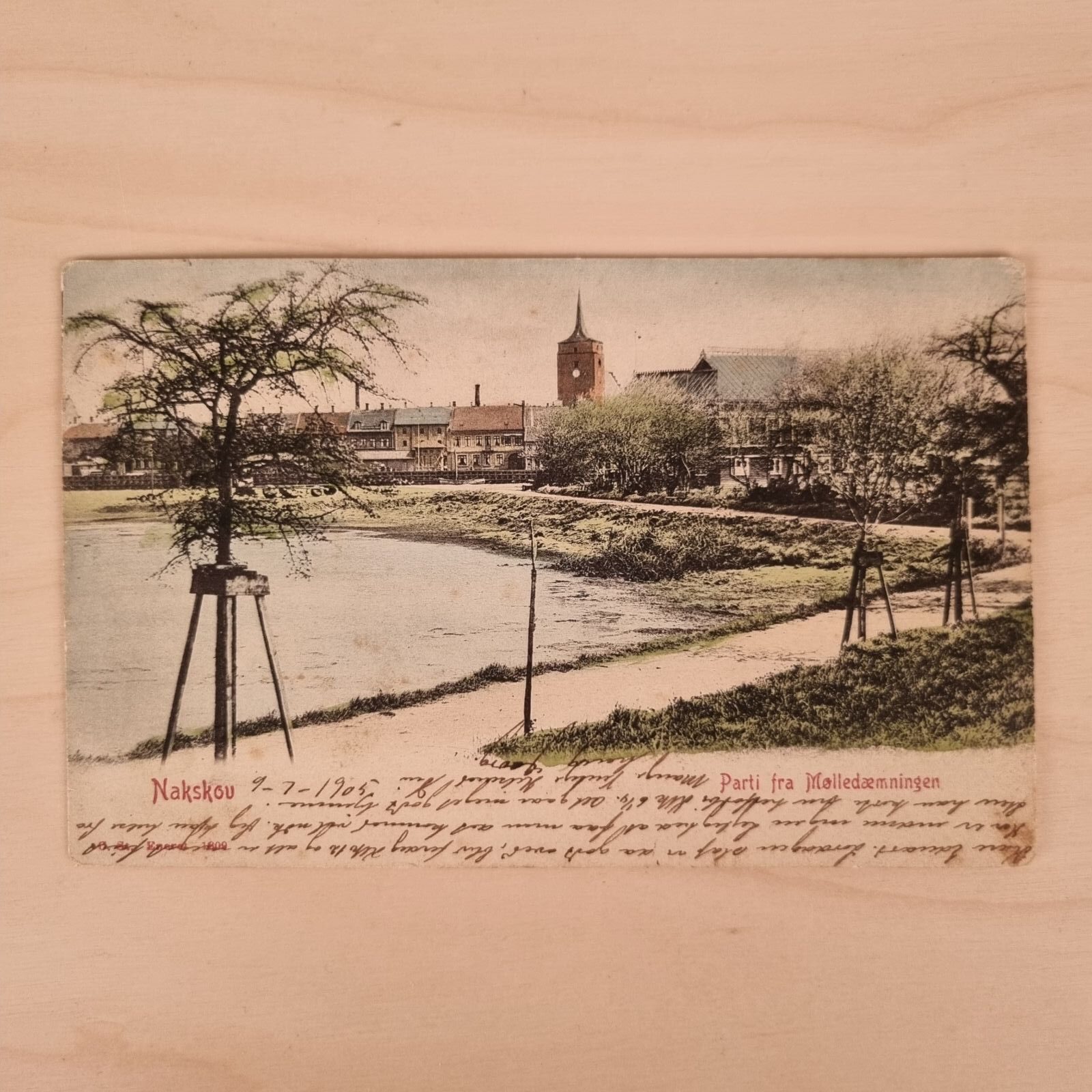 Postkort med motiv fra Nakskov, Mølledæmningen, ca. 1905