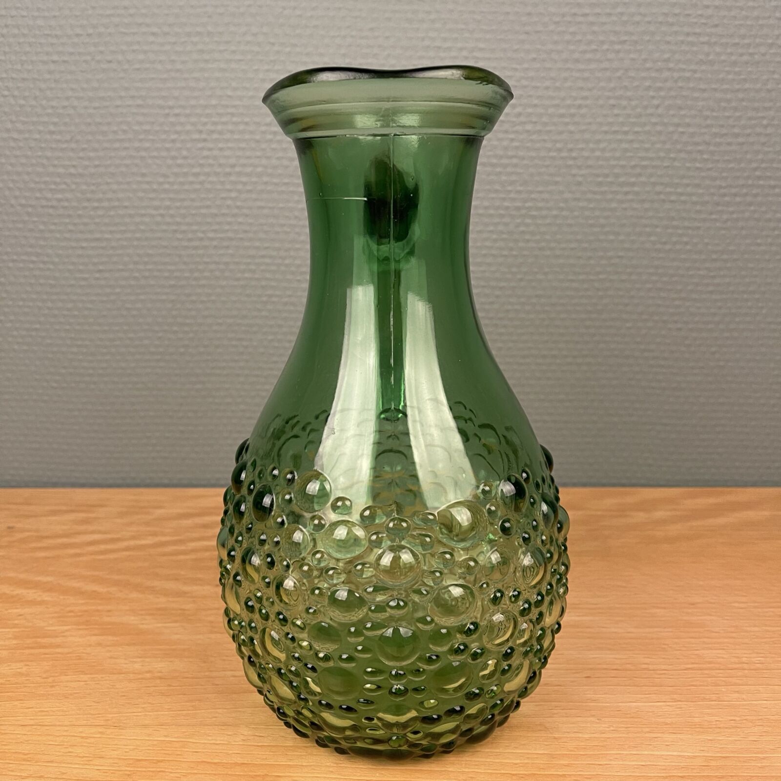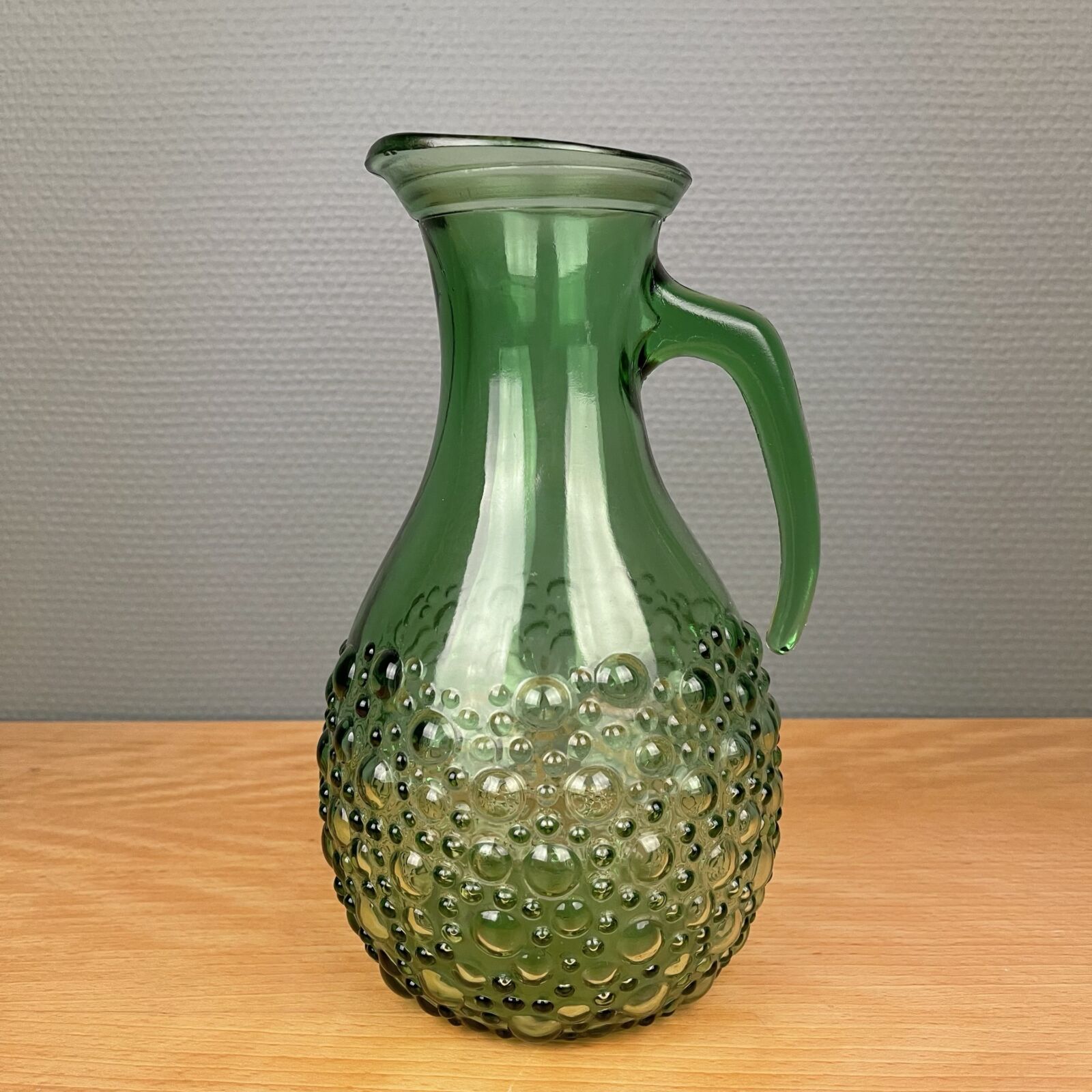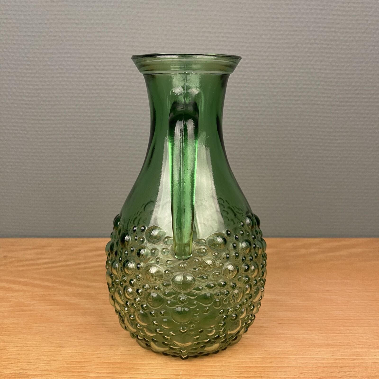 Smuk grøn retro kande i presset glas. 1 liter. Velholdt.