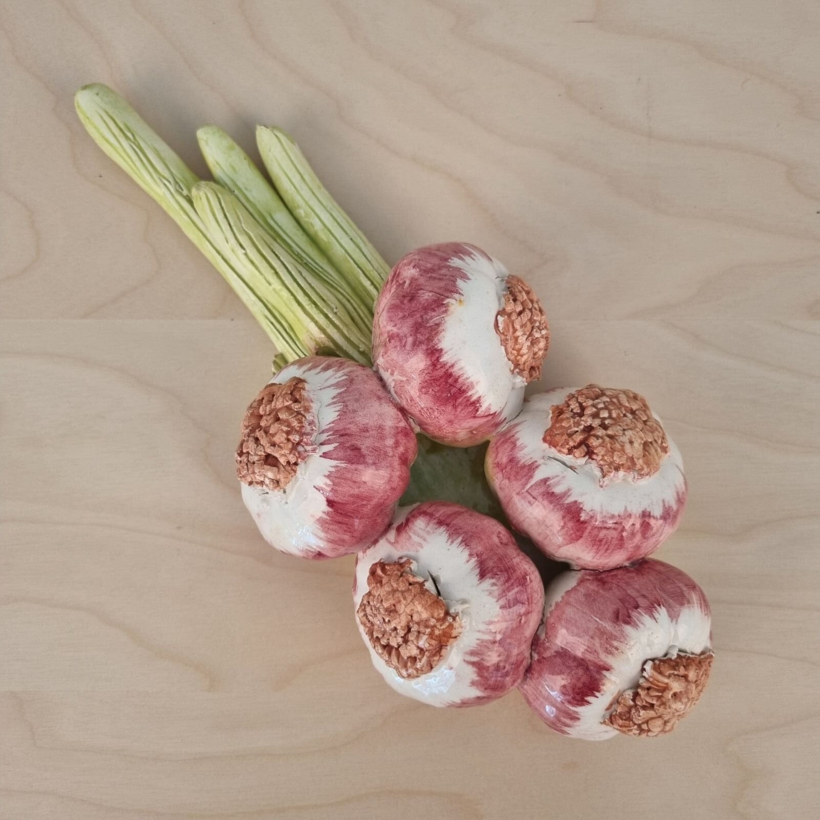 Stor, meget dekorativ og charmerende ranke af hvidløg i keramik.
