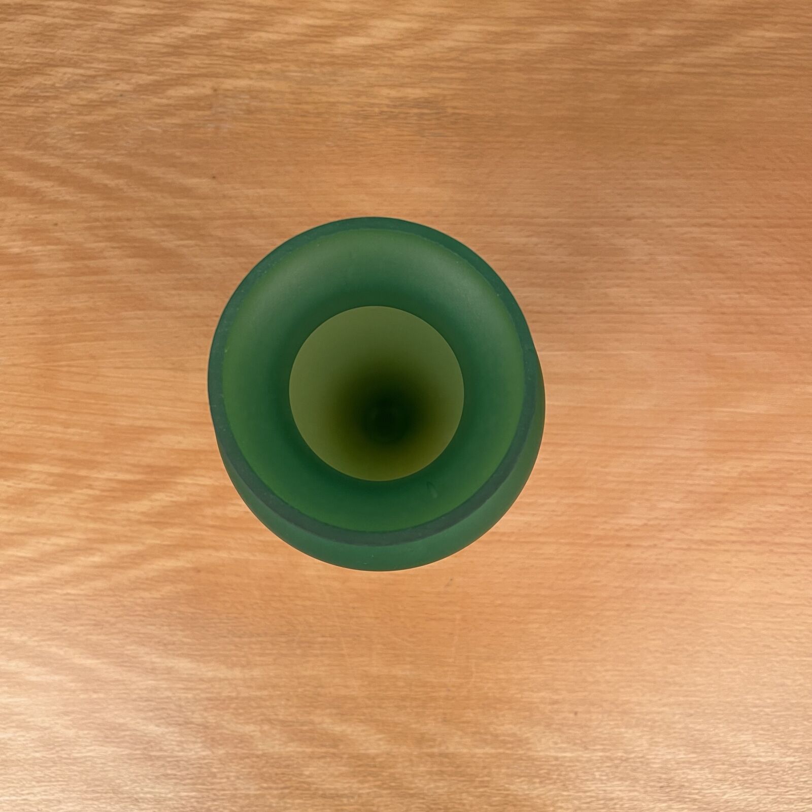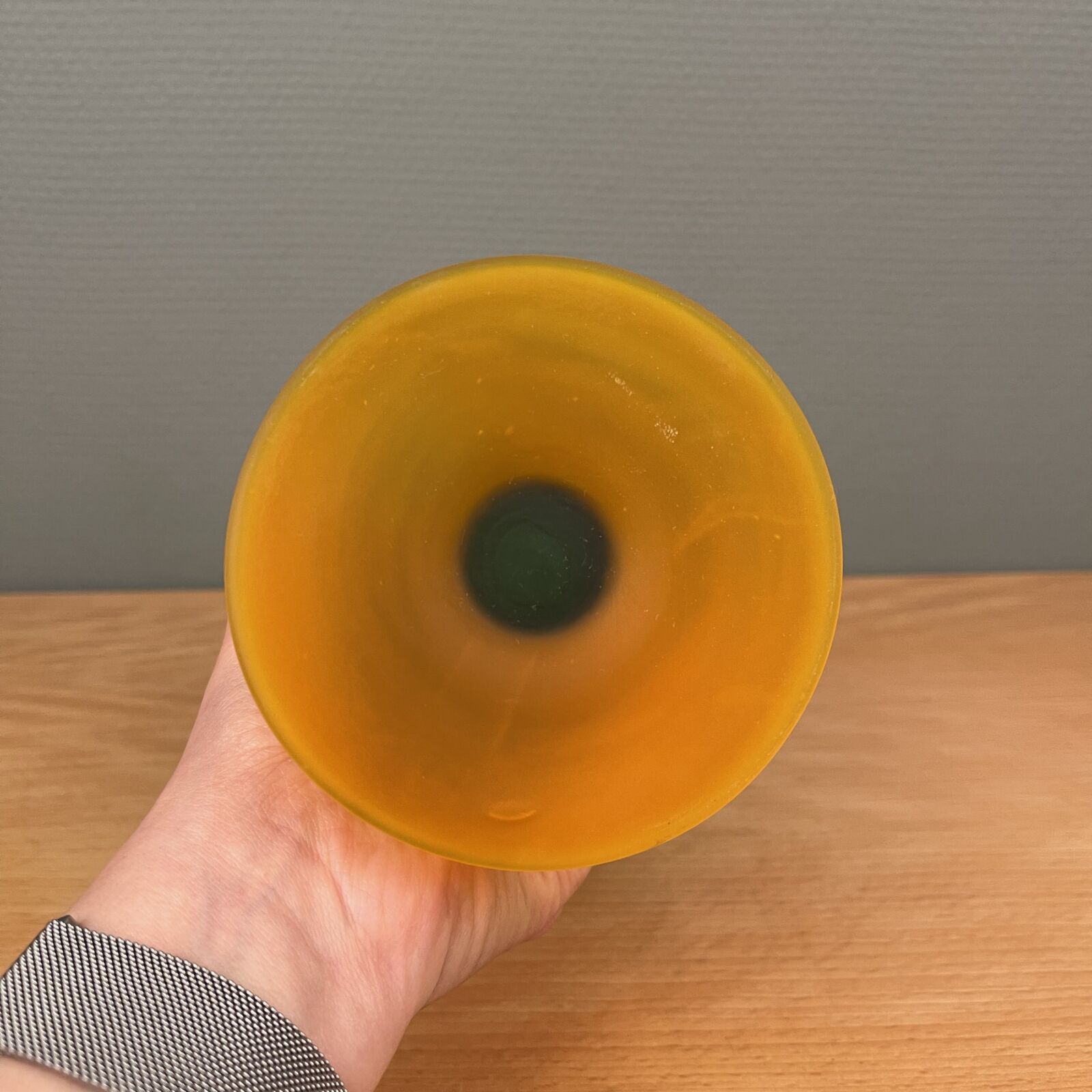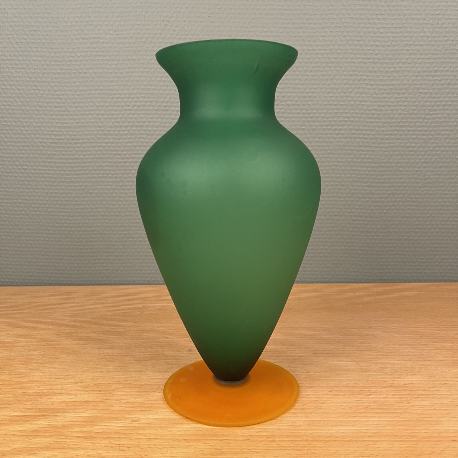 Fed retro Sia 90’er vase i frostet glas. Grøn vase med orange fod. 23,5cm høj. Velholdt og Intakt.
