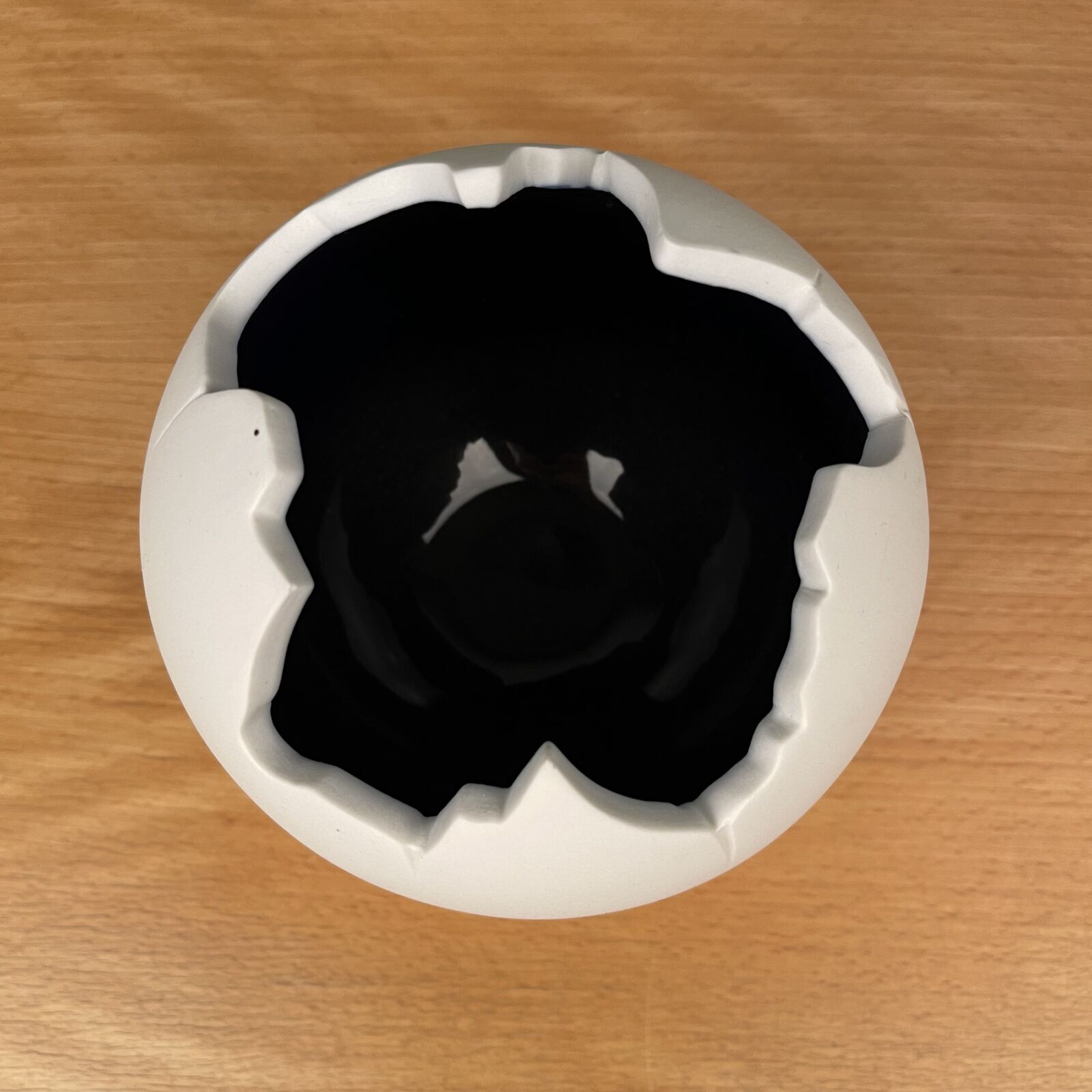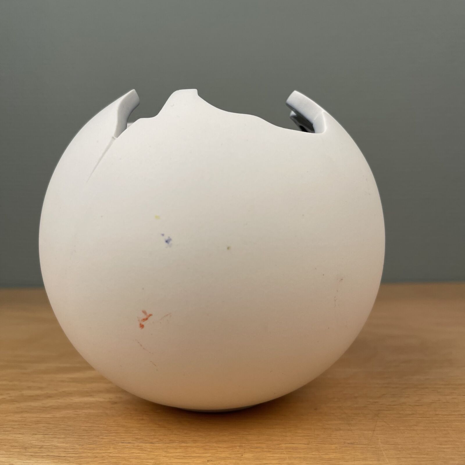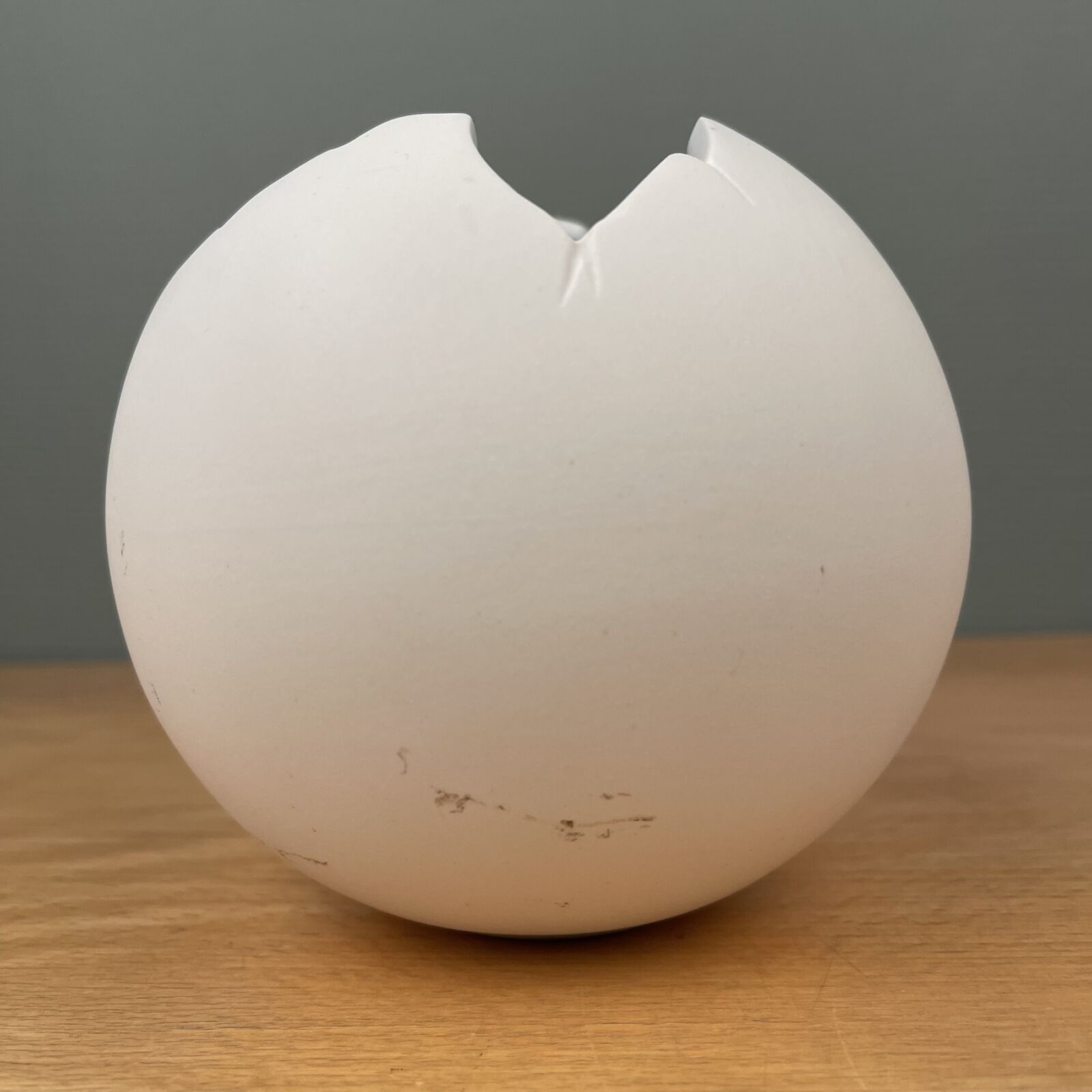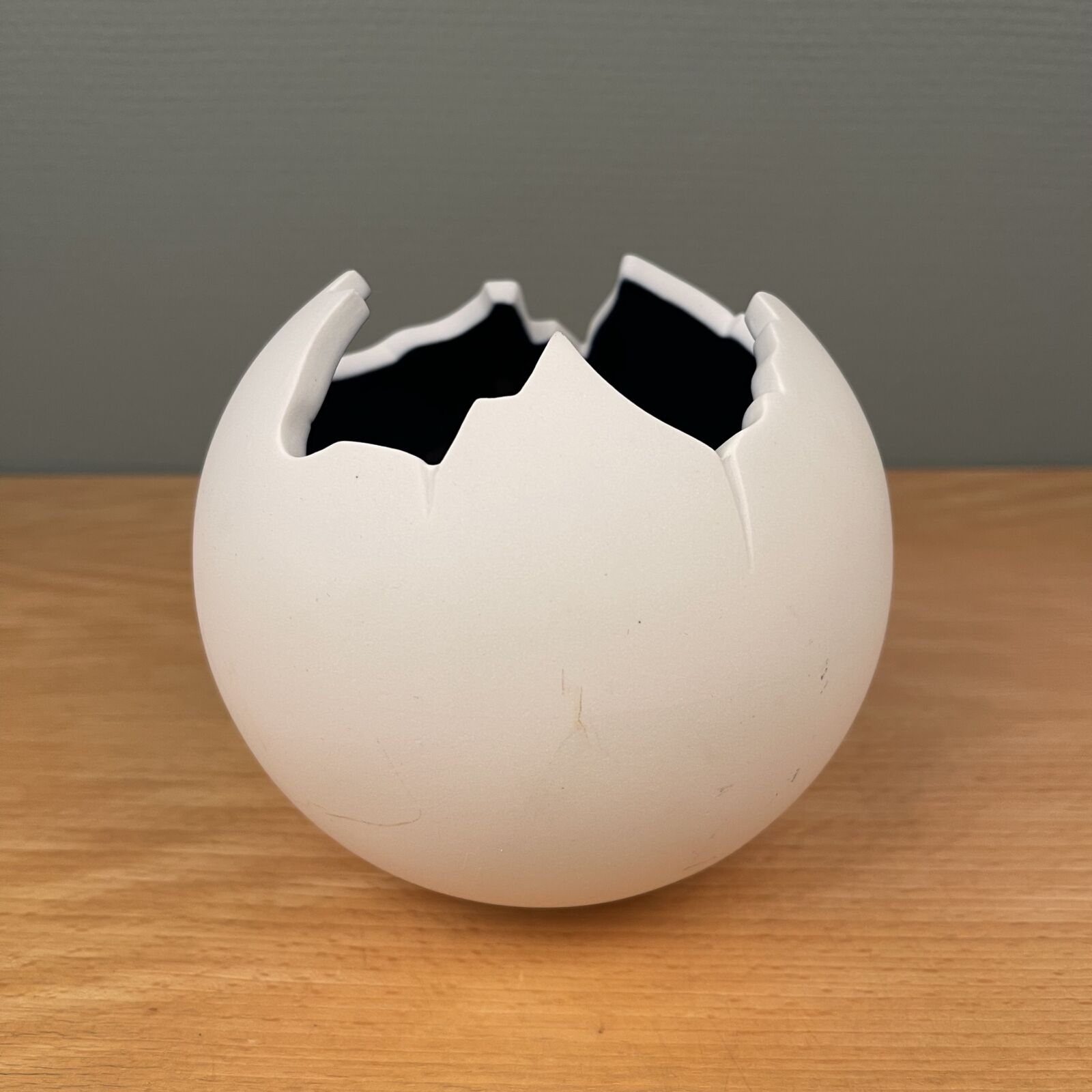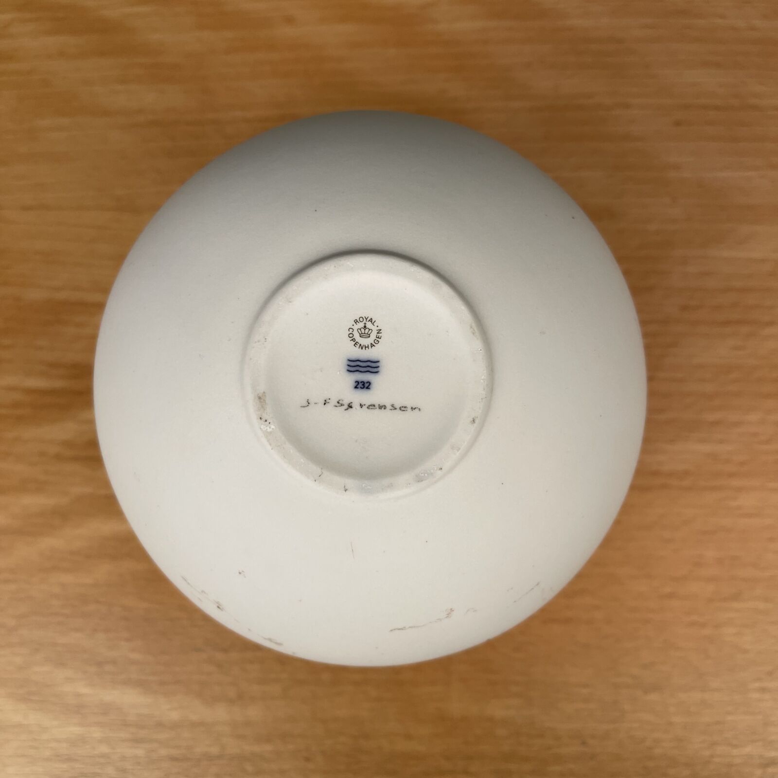 Globe skål designet af Jens Flemming-Sørensen for Royal Copenhagen. Hvid bisquit og indvendig blå glasur. 13cm Ø. Har brugsspor og er intakt.