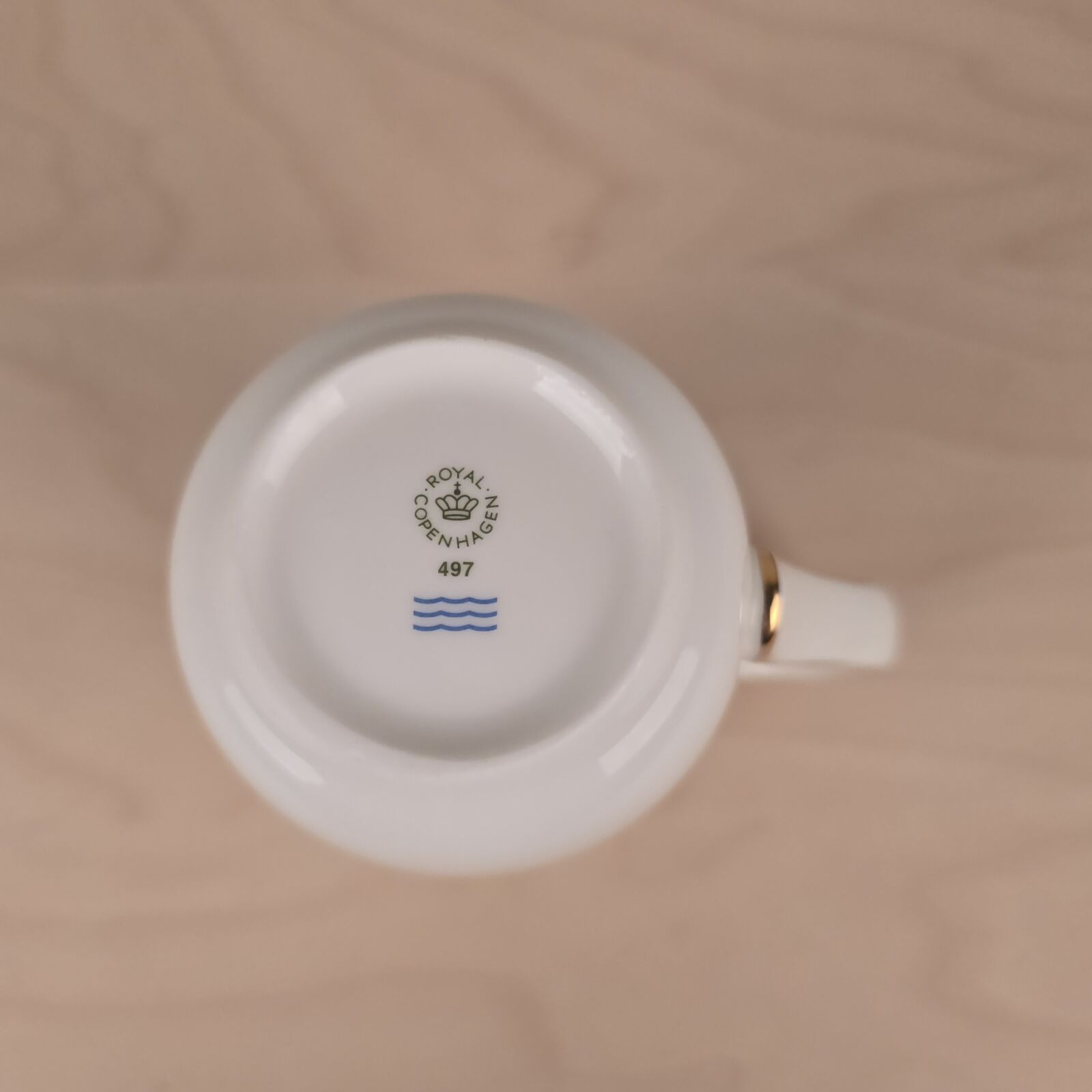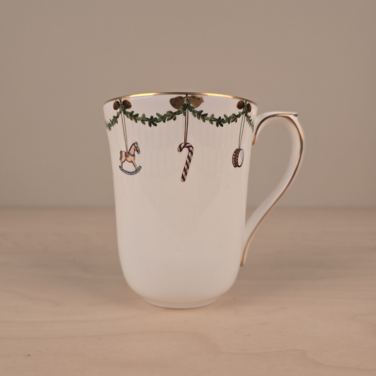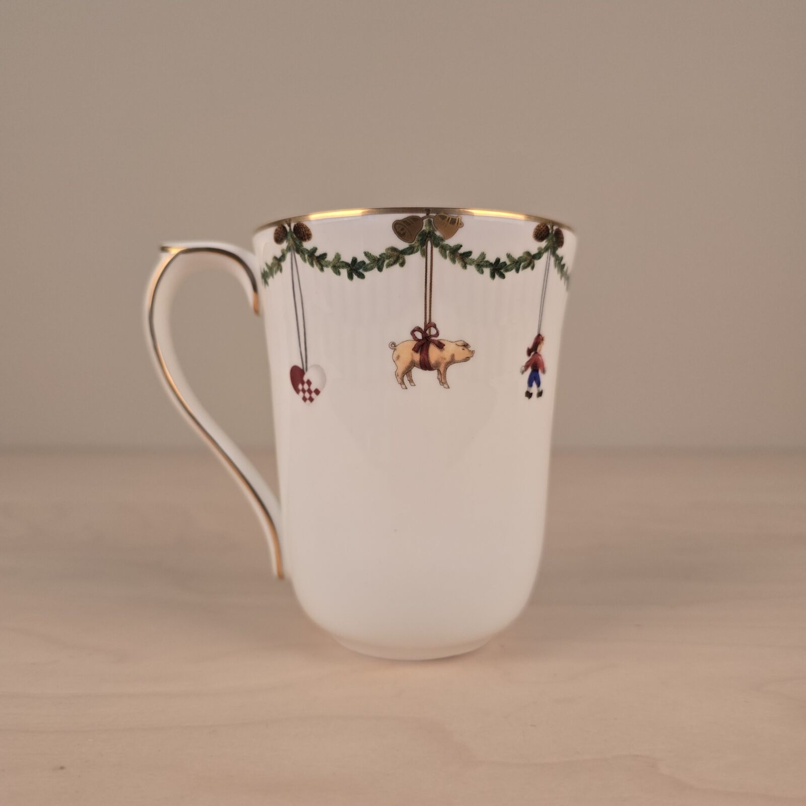 Royal Copenhagen Julekrus nr. 497. Stjerneriflet krus med guld bemaling. Velholdt og intakt. 1. sort. 36 cl.