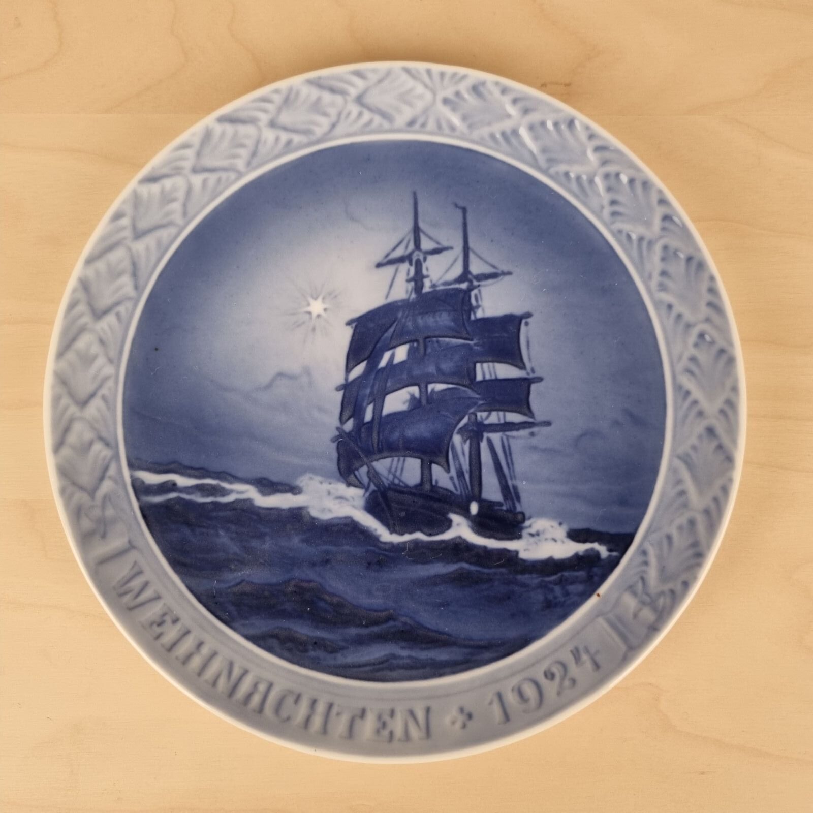 Royal Copenhagen juleplatte / Weihnachtsteller med tysk tekst fra 1924.