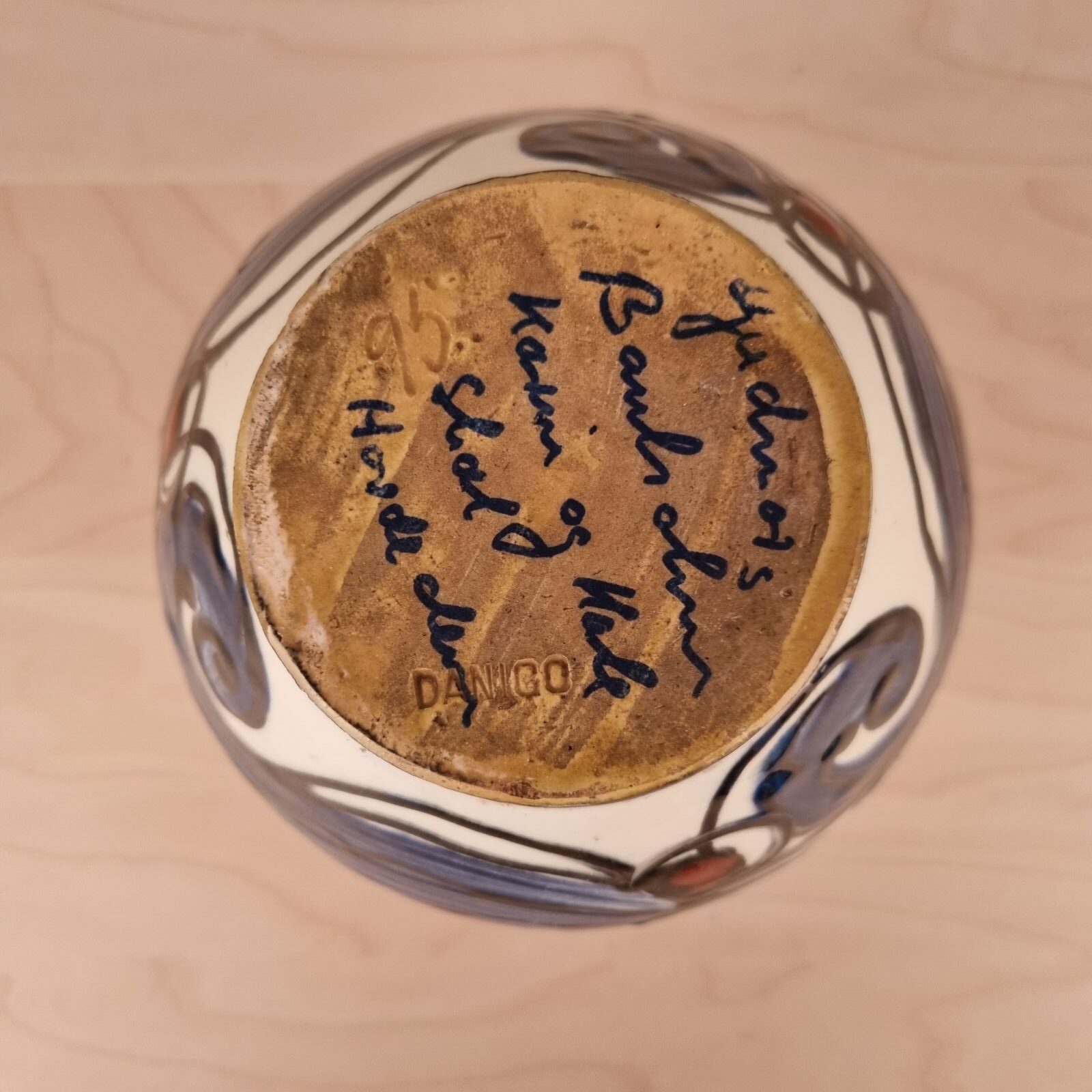 Tidligere ejer har skrevet i bunden med tusch.