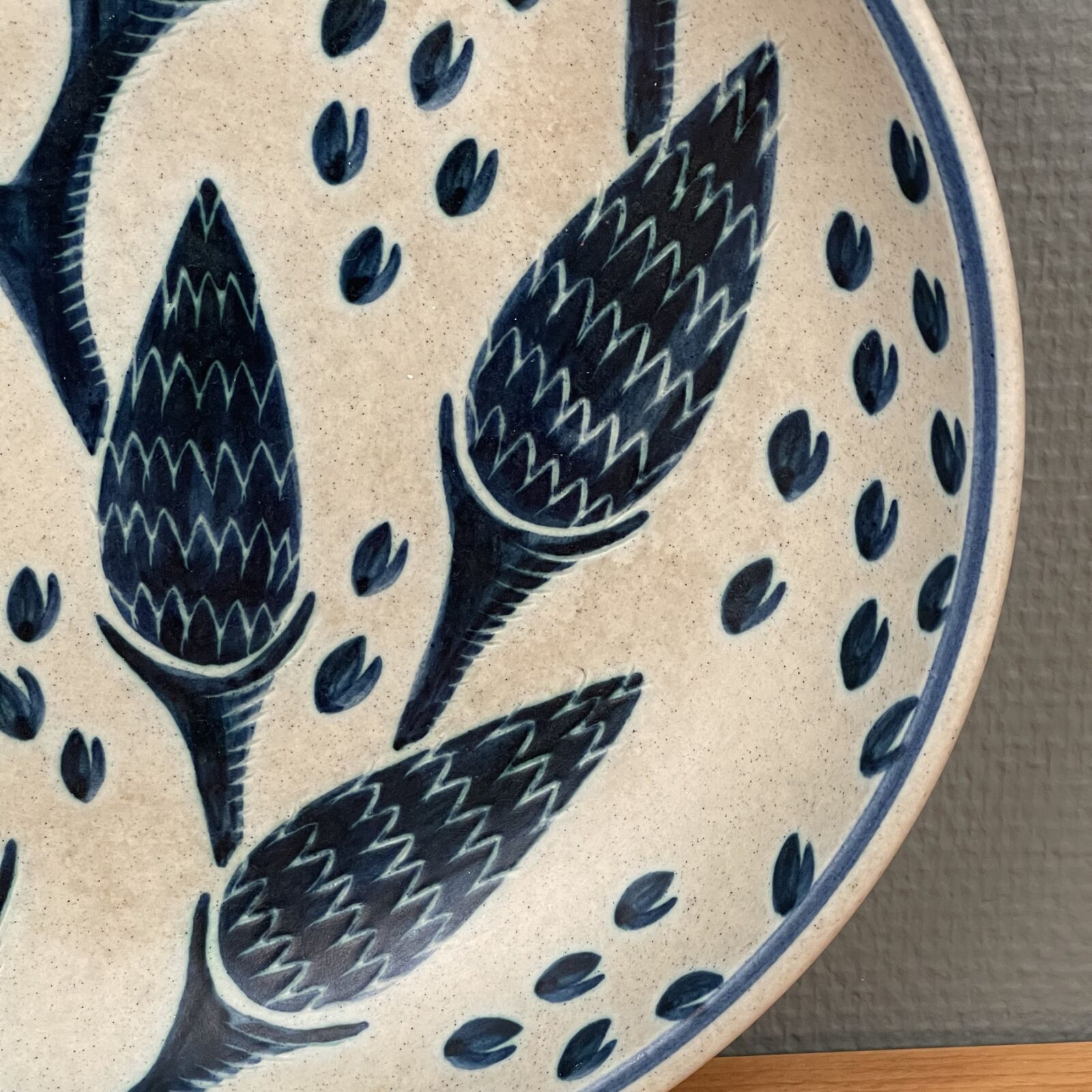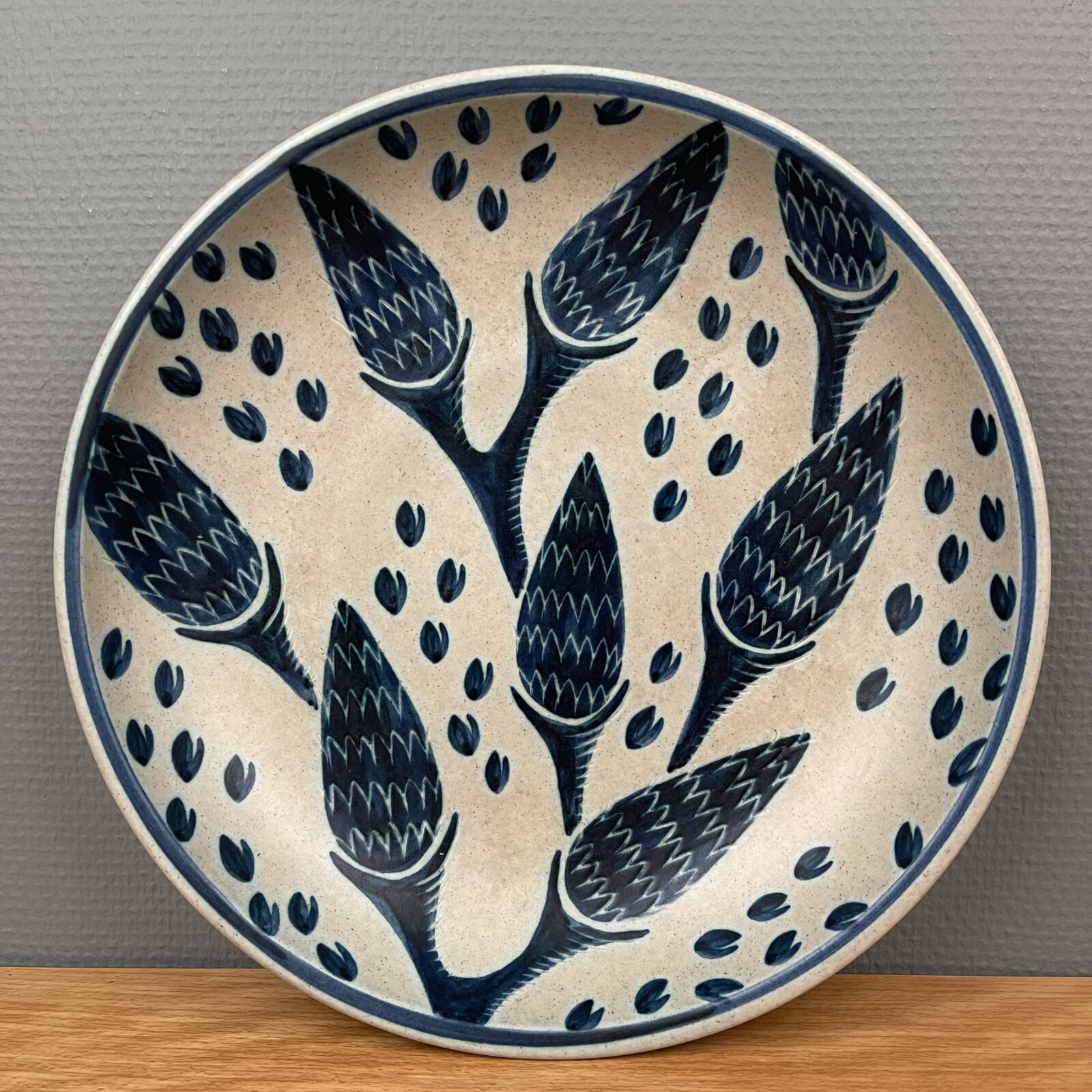 Smukkeste Søholm keramik fad. ‘Lupin’. Af Einer Johansen 1960. 32cm Ø. 6cm højt. Velholdt og intakt.