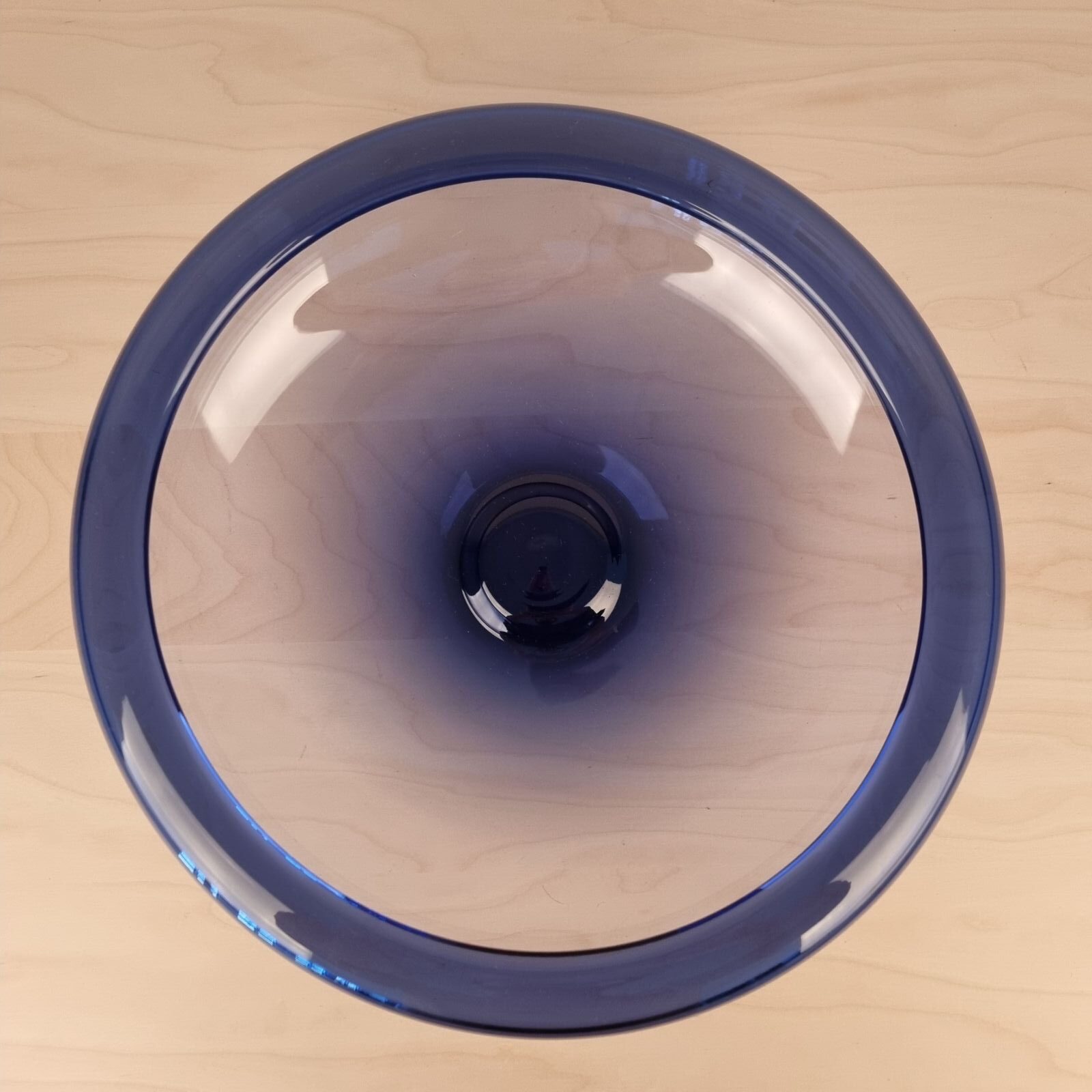 Safir-blå og med en diameter på hele 38 centimeter, samt en højde på 12 cm.