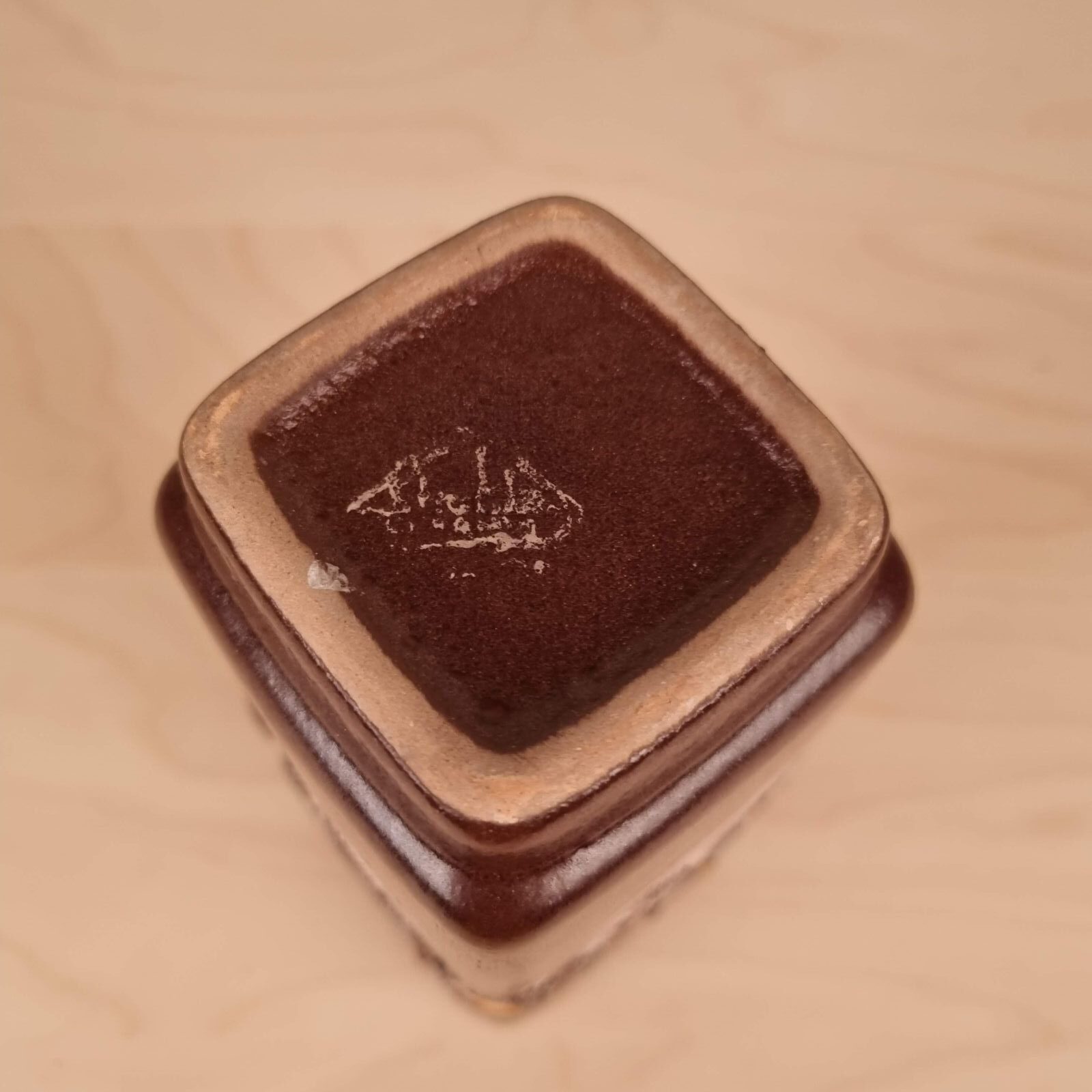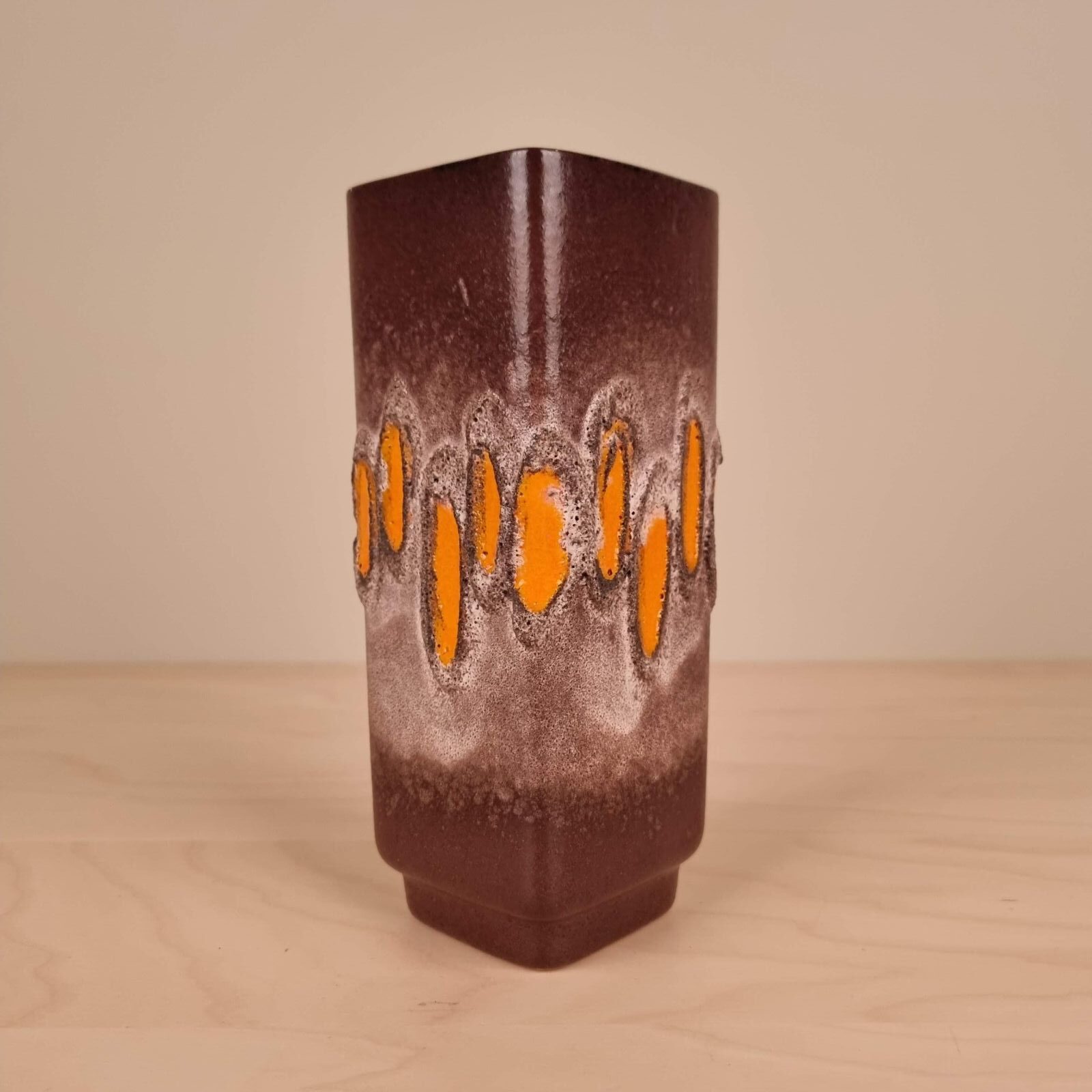 Fin vase fra Strehla Keramik, Vesttyskland, i brune og orange farver.