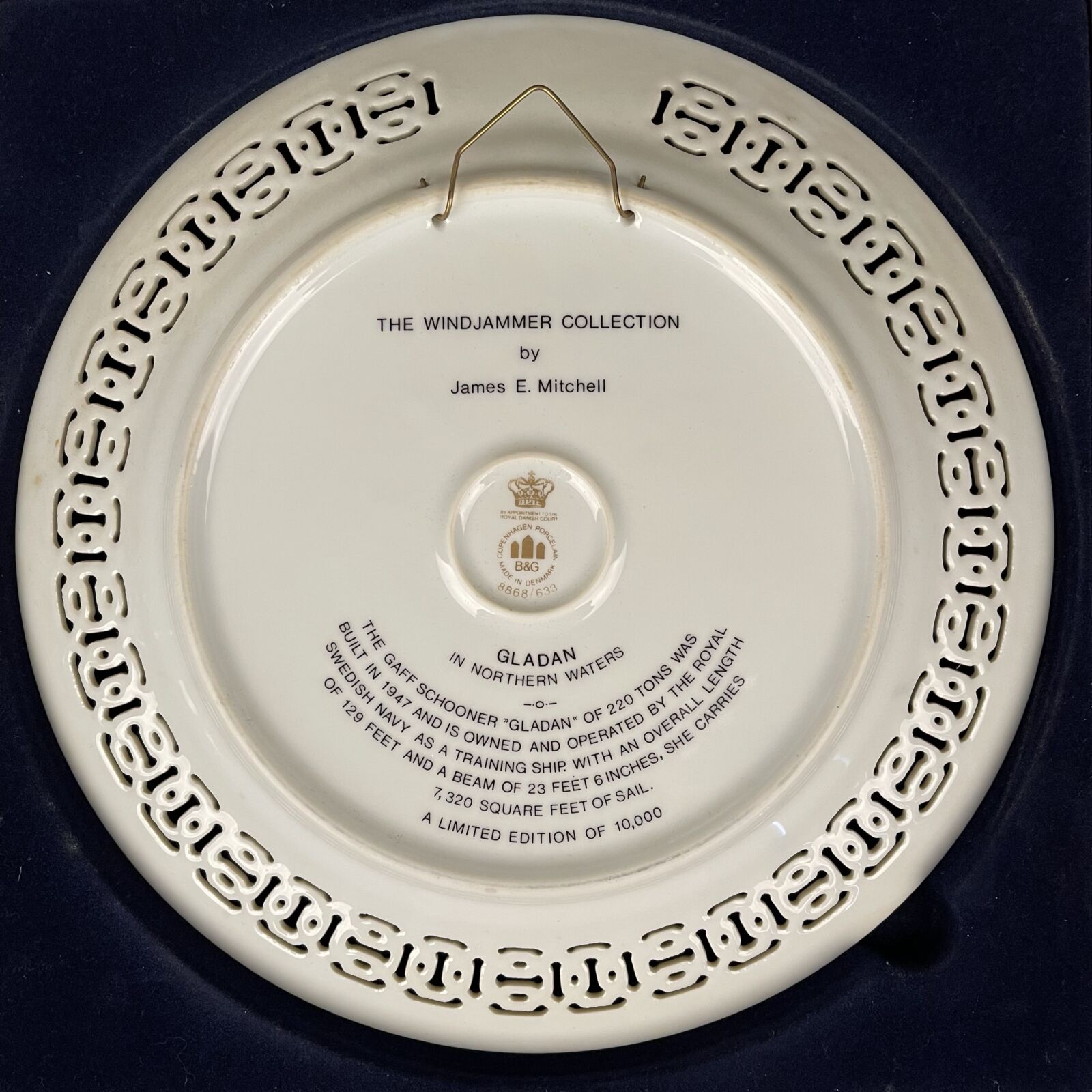 Smuk Bing & Grøndahl The Windjammer Collection platte i original æske og med certifikat. Af James E. Mitchell. Nr. 3 “Gladan” (8868/633). Meget velholdt. 28cm Ø.