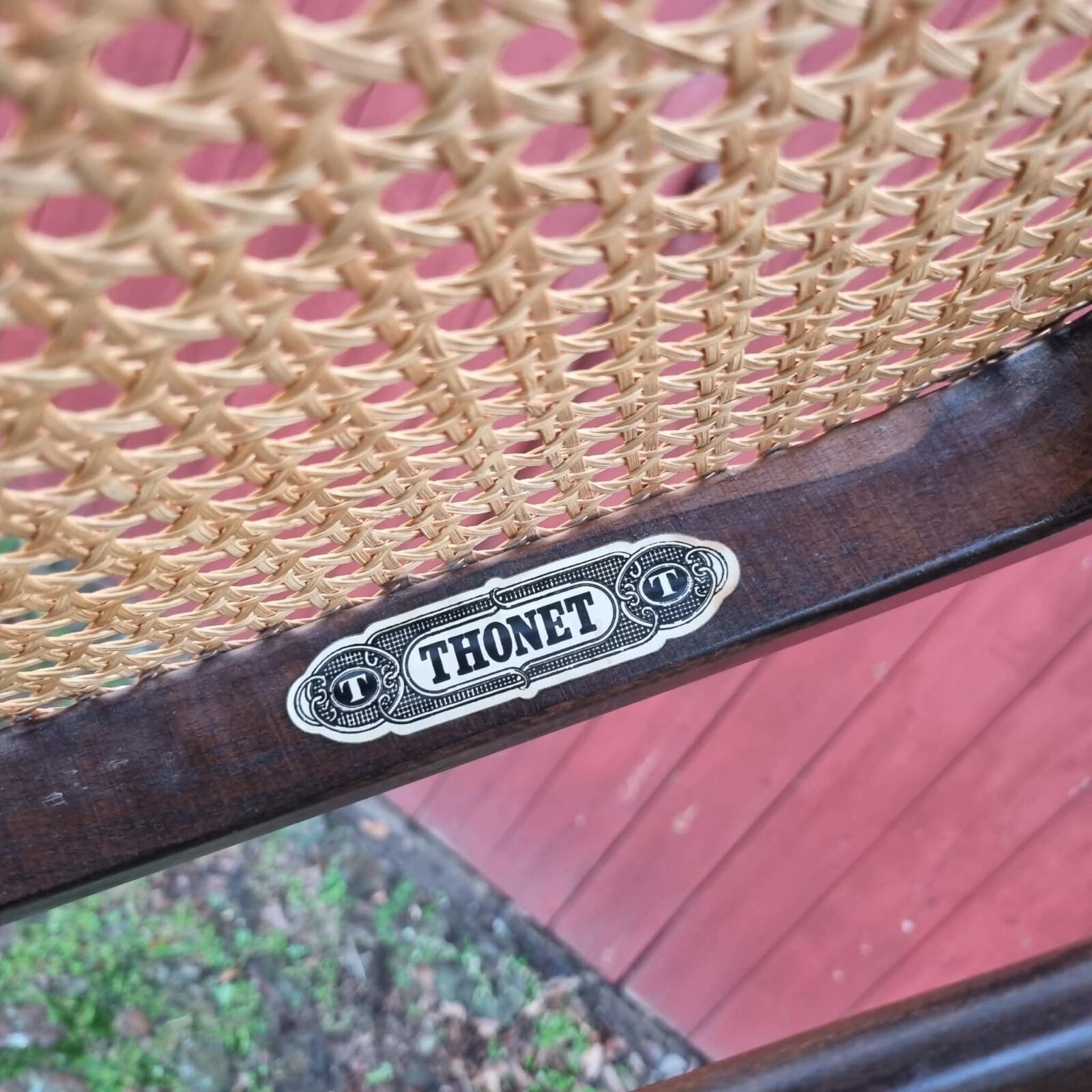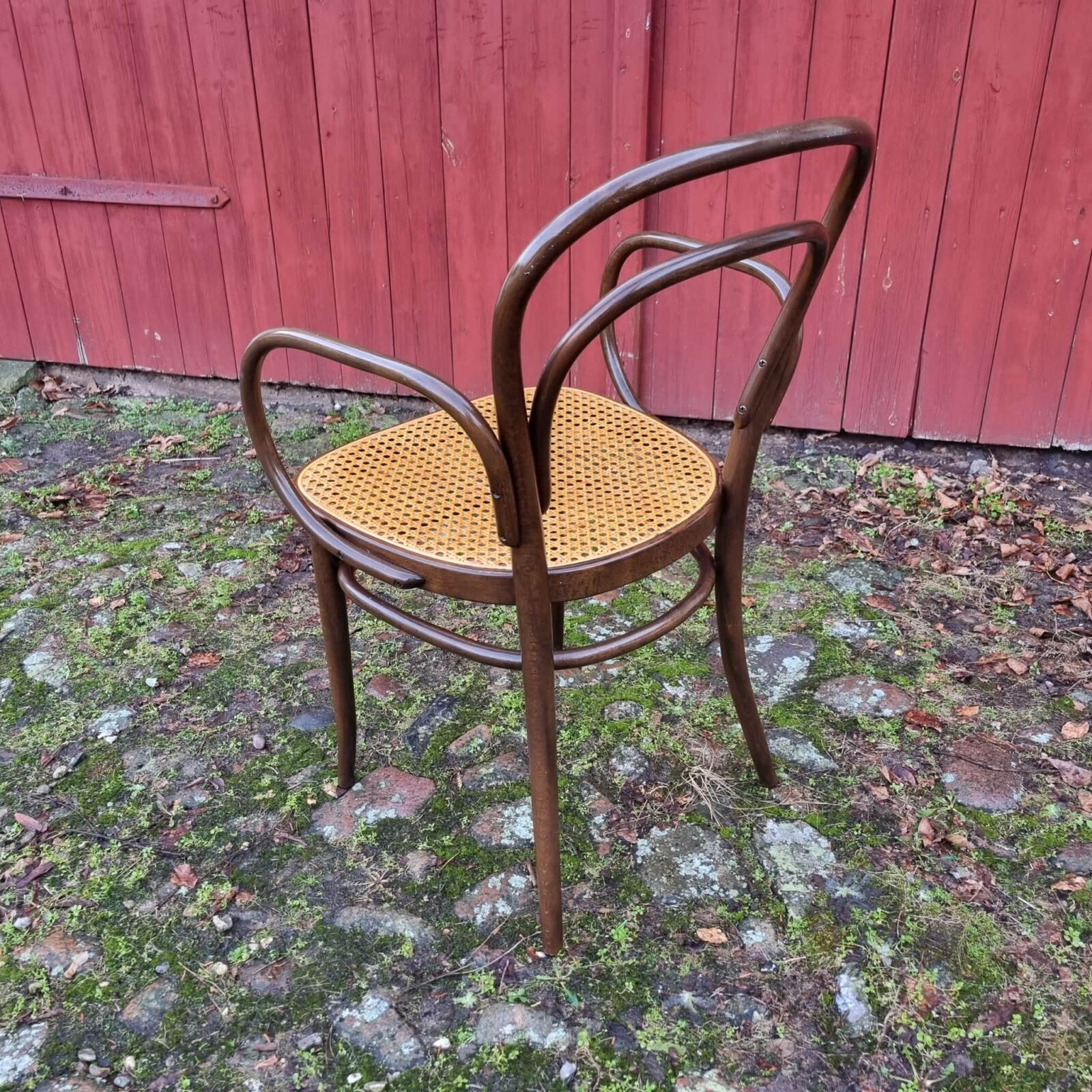 Smuk Thonet Wienerstol med armlæn. Flet intakt og i fin brugt stand. Alm. brugsspor. Velholdt. Med originalt mærkat.