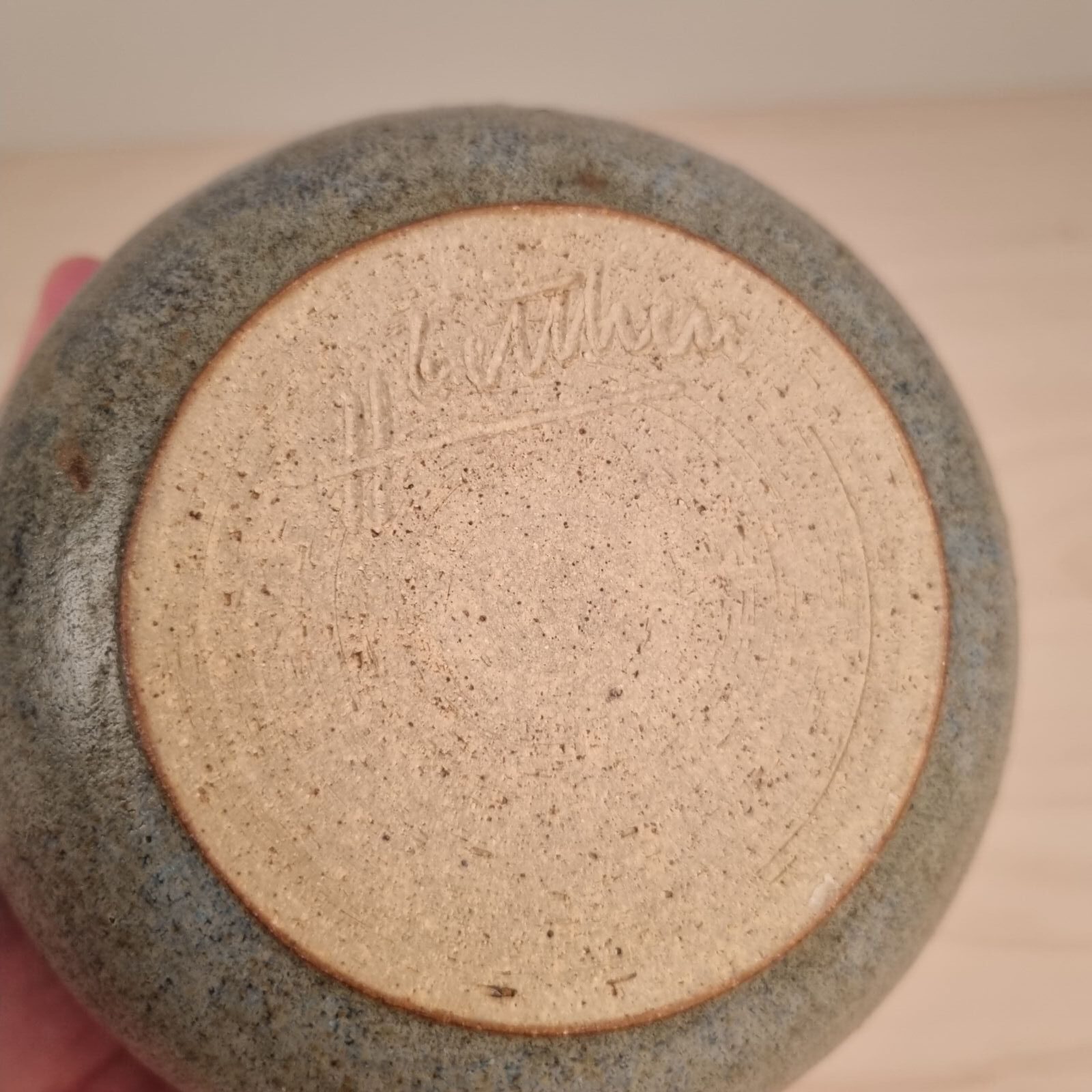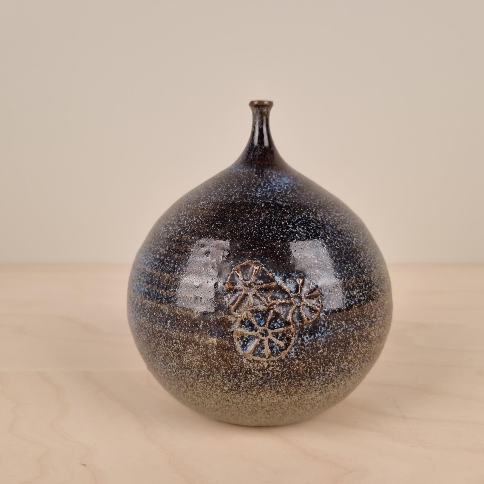 Fin vase i stentøj med smal hals. Svensk, men kunstneren er for os ukendt.