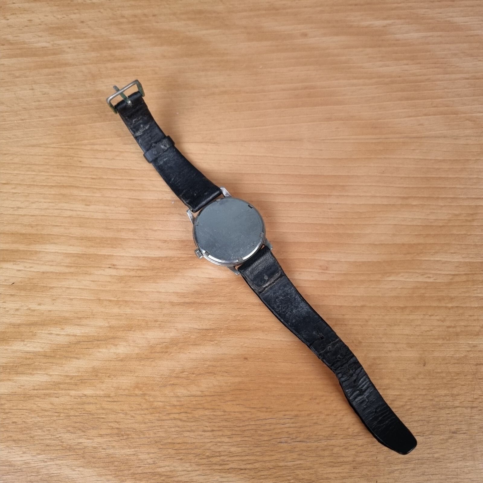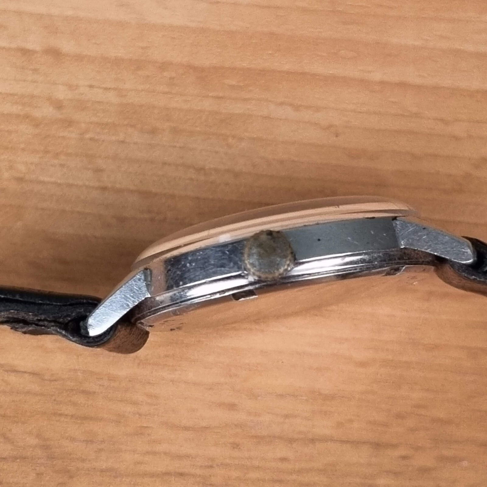 Uret er i udmærket stand rent kosmetisk, og går som det skal. Remmen trænger til en udskiftning. Der har været gået med uret i mange, mange år så det har selvfølgelig slid og ridser på kassen.